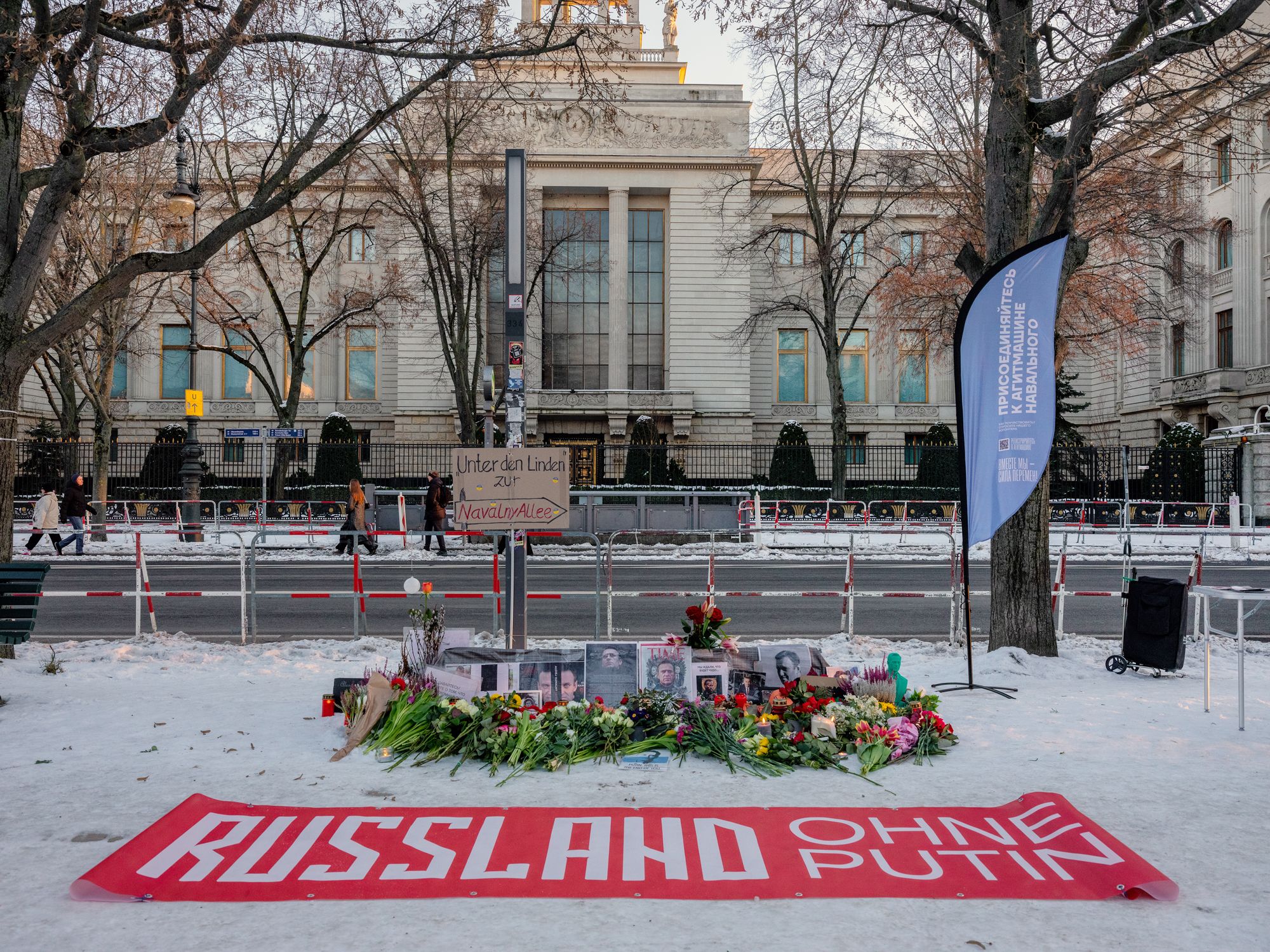 В годовщину гибели политика Владимир принес цветы к стихийному мемориалу на улице Унтер ден Линден в Берлине. Он расположен прямо напротив российского посольства, всего в метре от другого места народной памяти — мемориала жертвам российского вторжения в Украину. На снегу — несколько фотографий Алексея Навального, зажженные лампадки, охапки цветов и плакаты, написанные от руки: «Они умрут» и «Ничего не бойся». По словам Владимира, уже год он каждую неделю приносит сюда цветы.