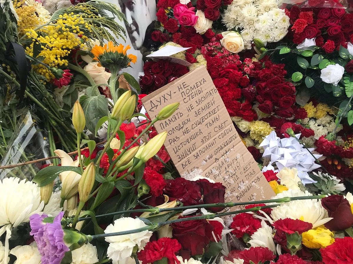 Годовщина смерти Алексея Навального: огромные очереди и гора цветов на могиле. Репортаж с Борисовского кладбища