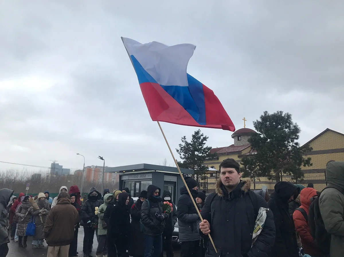 «Прежде всего я пришел сюда, чтобы почтить память Алексея Навального, — поделился в разговоре с «Новой» студент Георгий М. — Флаг России я взял с собой, чтобы Навальный смотрел на него с небес — и радовался, что тот государственный символ, с которым он выступал при жизни, который олицетворял весь российский народ, он и после его смерти не растерял своей актуальности, что и после его смерти люди идут с этим знаменем, что они верят в Россию — в прекрасную Россию будущего, которую он так стремился построить для всех нас».
