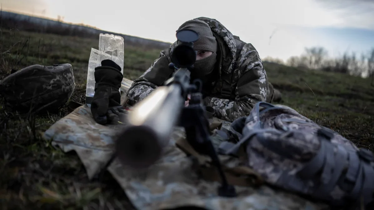 A sniper does target practice at a shooting range near the front line in eastern Ukraine’s Donetsk region, 23 December 2023. Photo: Viacheslav Ratynskyi / Reuters / Scanpix / LETA