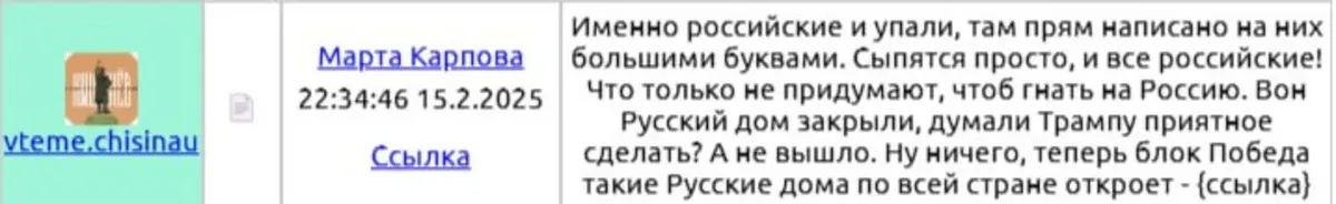 Боты во «Вконтакте» в период с 13 по 20 февраля оставили не менее 175 комментариев под постами о закрытии Российского центра науки и культуры в Кишиневе после падения беспилотников на территории республики. Об этом «Новой-Европа» рассказали в «Ботнадзоре».