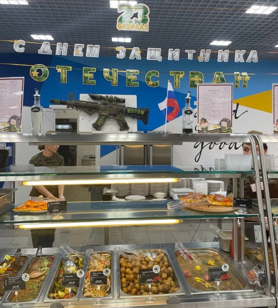 В корпусе ВШЭ на Старой Басманной в Москве появилось тематическое меню к 23 февраля: «Салат АК-47», рагу «Фронтовое», «солдатский шашлычок», военно-полевая гречка… — обратил внимание канал «Осторожно, Москва».