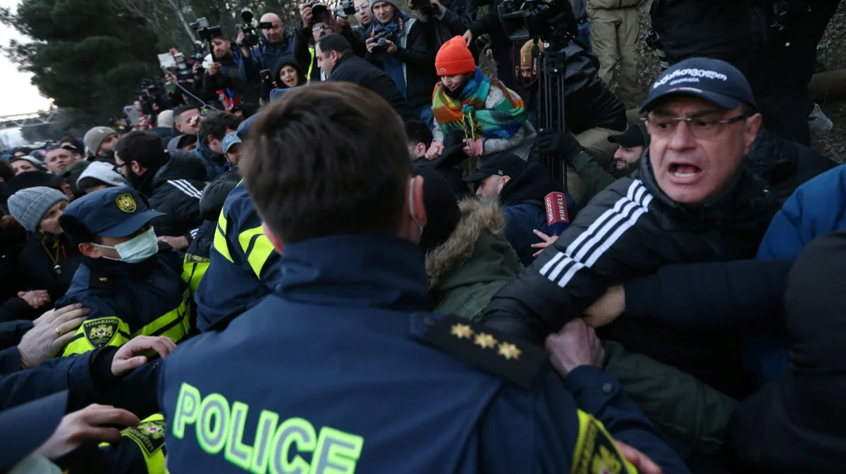 Столкновения протестующих с полицией на акции с требованием новых парламентских выборов, Тбилиси, Грузия, 2 февраля 2025 года. Фото: Irakli Gedenidze / Reuters / Scanpix / LETA