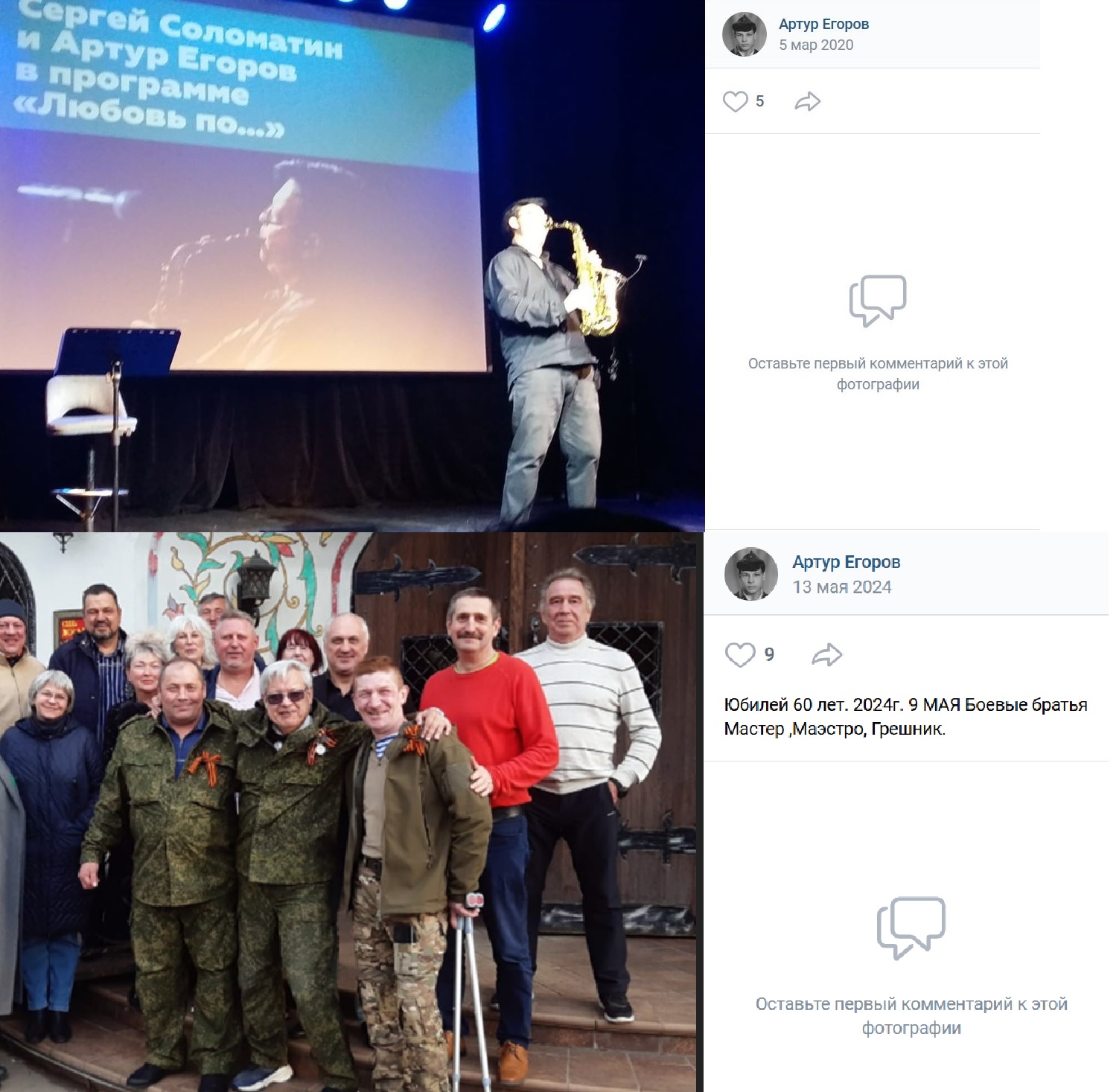До войны Егоров был альт-саксофонистом и выступал в клубах и на корпоративных мероприятиях. В 2024-м он уже на протезе праздновал свой юбилей с "боевыми братьями".