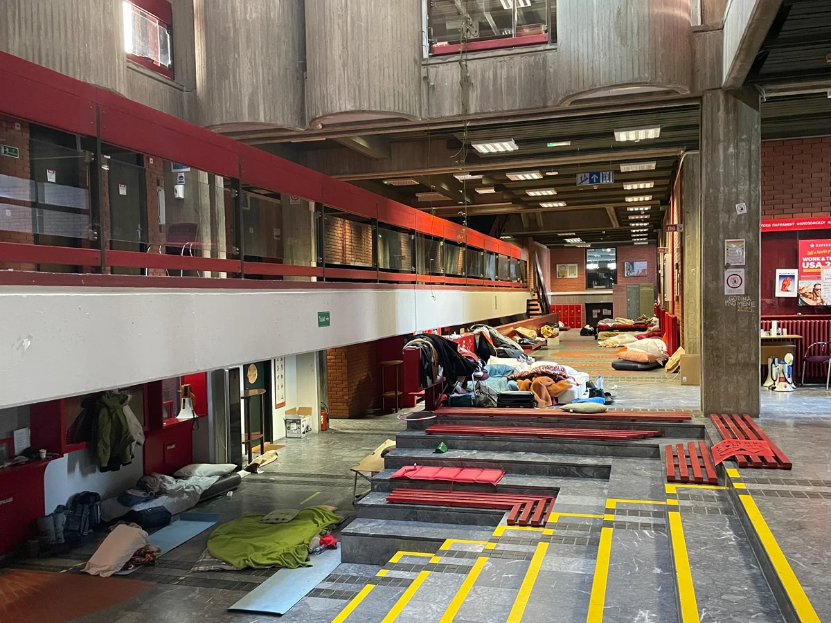 Многие профессора поддержали студенческий протест. Кому-то даже разрешают участвовать в пленумах, кто-то выступал с речью на протестах. «У нас есть специальный совместный пленум для студентов и профессоров. Они не принимают серьезных решений, но пытаются найти путь помогать нам», — объясняет Лука. Когда я уходил с захваченного факультета в Нови-Саде, Саво познакомил меня с шедшей навстречу заведующей кафедрой журналистики — мы обменялись любезностями, и профессор побежала на факультет.