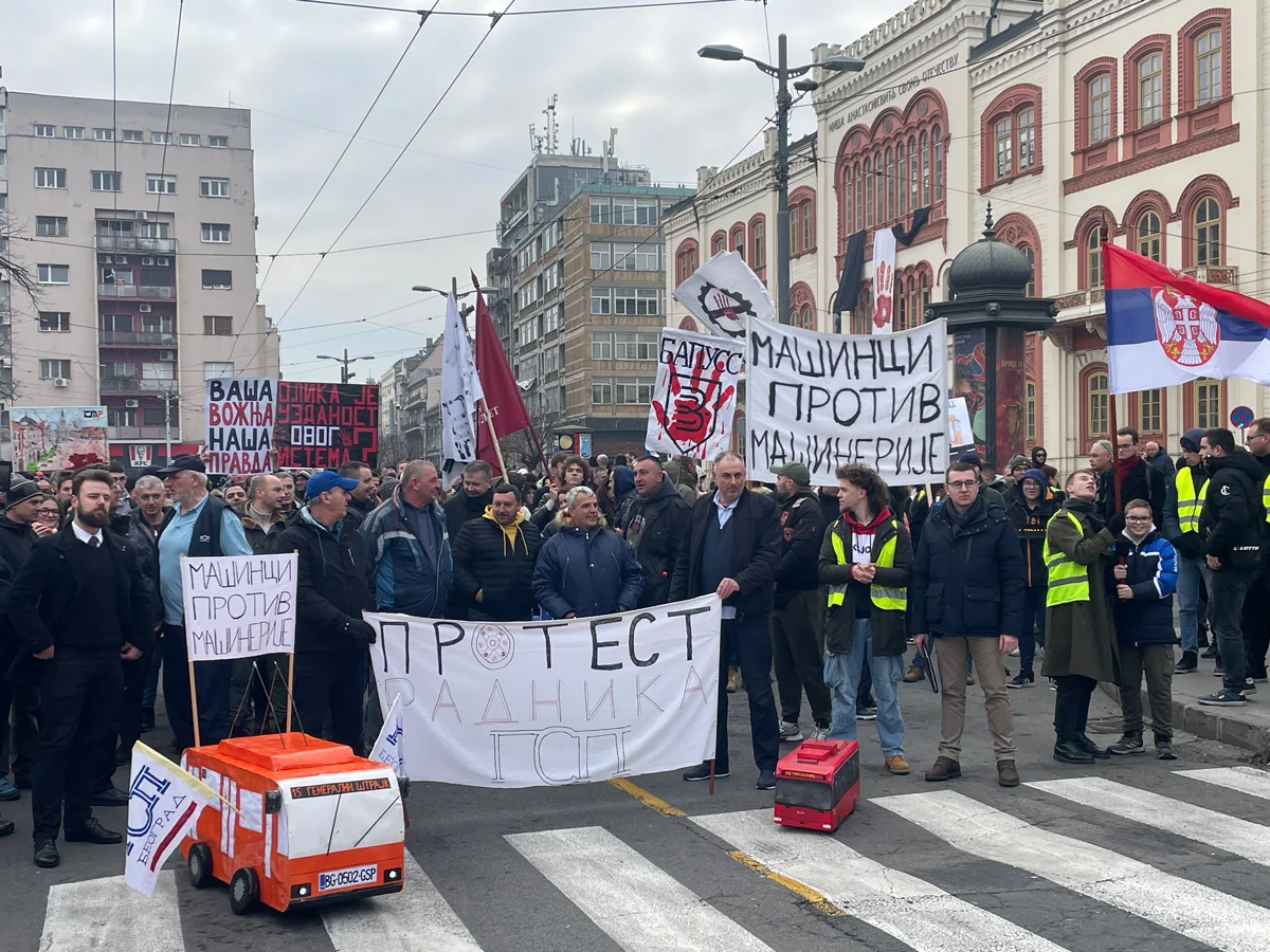 5 февраля ранним утром около 100 водителей троллейбусов собираются у здания ГСП (городской транспортной компании Белграда). Когда к ним присоединяется колонна студентов с большим транспарантом «Машинци против машинерији» (водители против техники), все начинают путь по центру города к зданию мэрии.