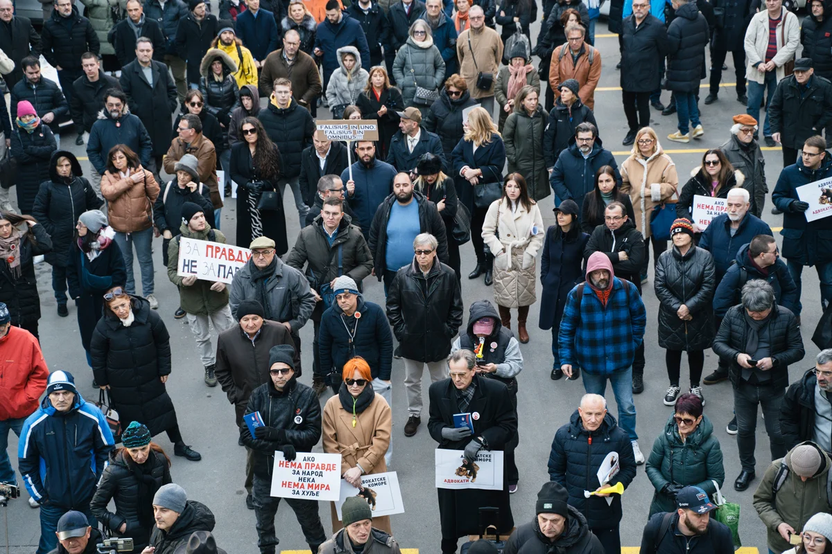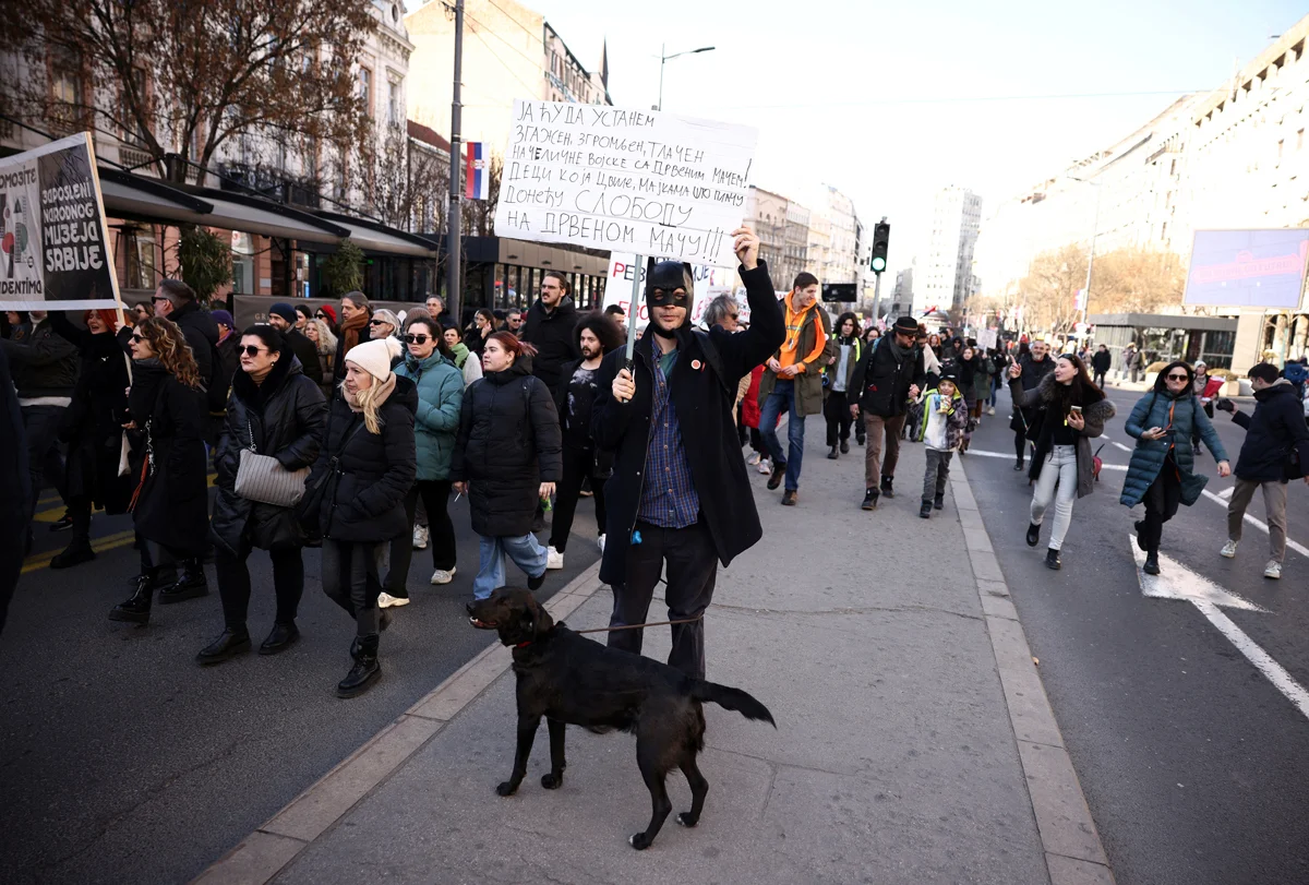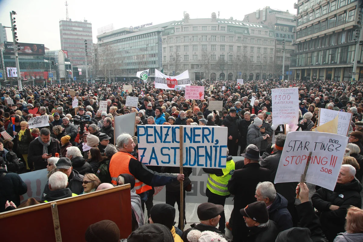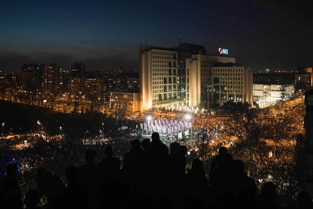 С начала ноября 2024 года Сербия охвачена небывалыми по длительности и массовости протестами. Университеты Белграда и Нови-сада, а также многие школы не работают уже несколько месяцев, на улицы выходят всё новые группы местных жителей. Каждое утро и вечер акции протеста проходят в разных районах Белграда, а раз в две недели — масштабный митинг (15 февраля в Крагуеваце, 1 марта — в Нише). От политических требований и лидеров, ведущих массы за собой, сербский протест принципиально отказывается.