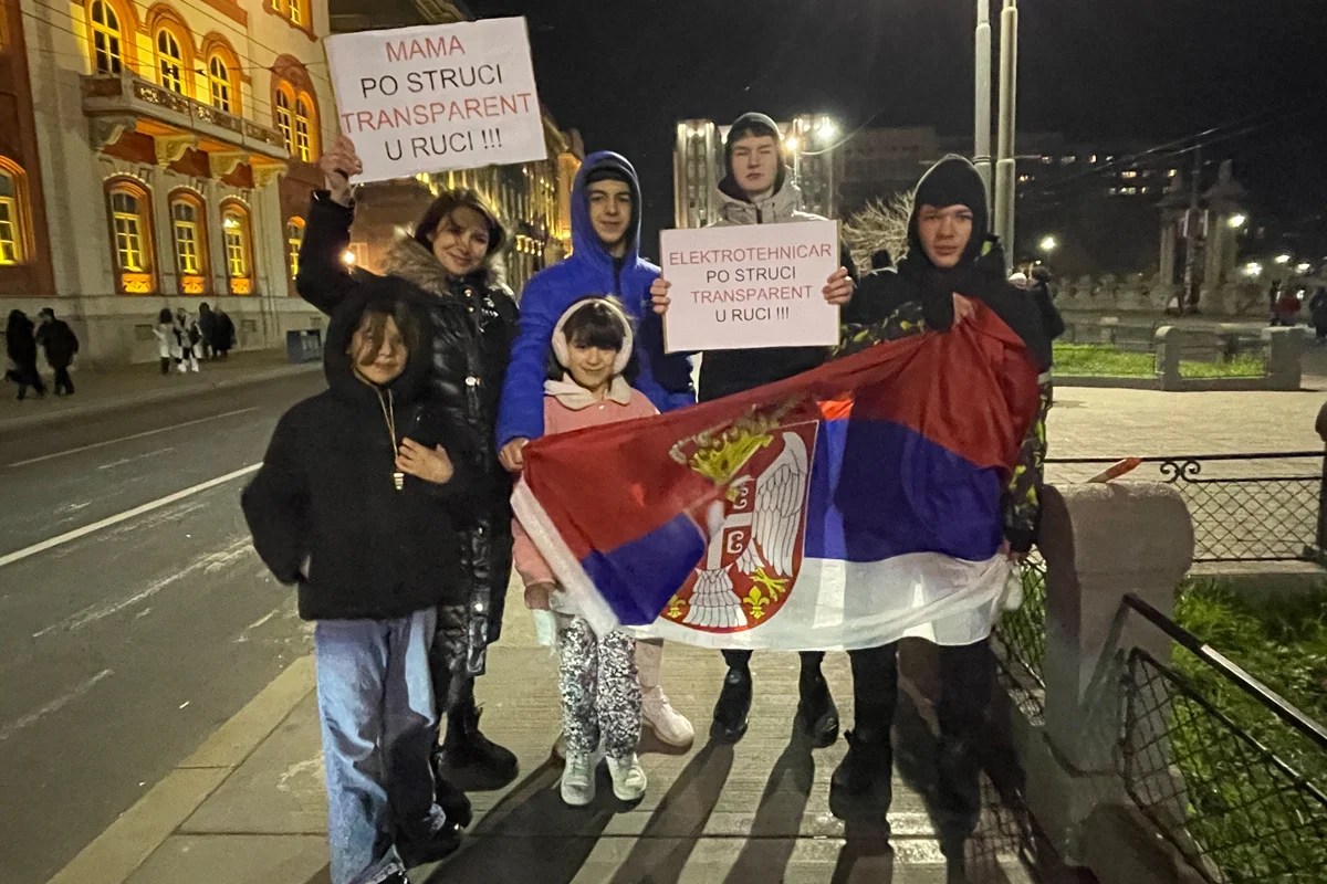 — Мы хотим улучшения ситуации во всей стране, — говорит мама (ее зовут Ива) на сербском, а сын переводит на английский. — Мы хотим справедливости, хотим перемен. Протест заряжает нас энергией и дает надежду, что мы будем жить лучше.