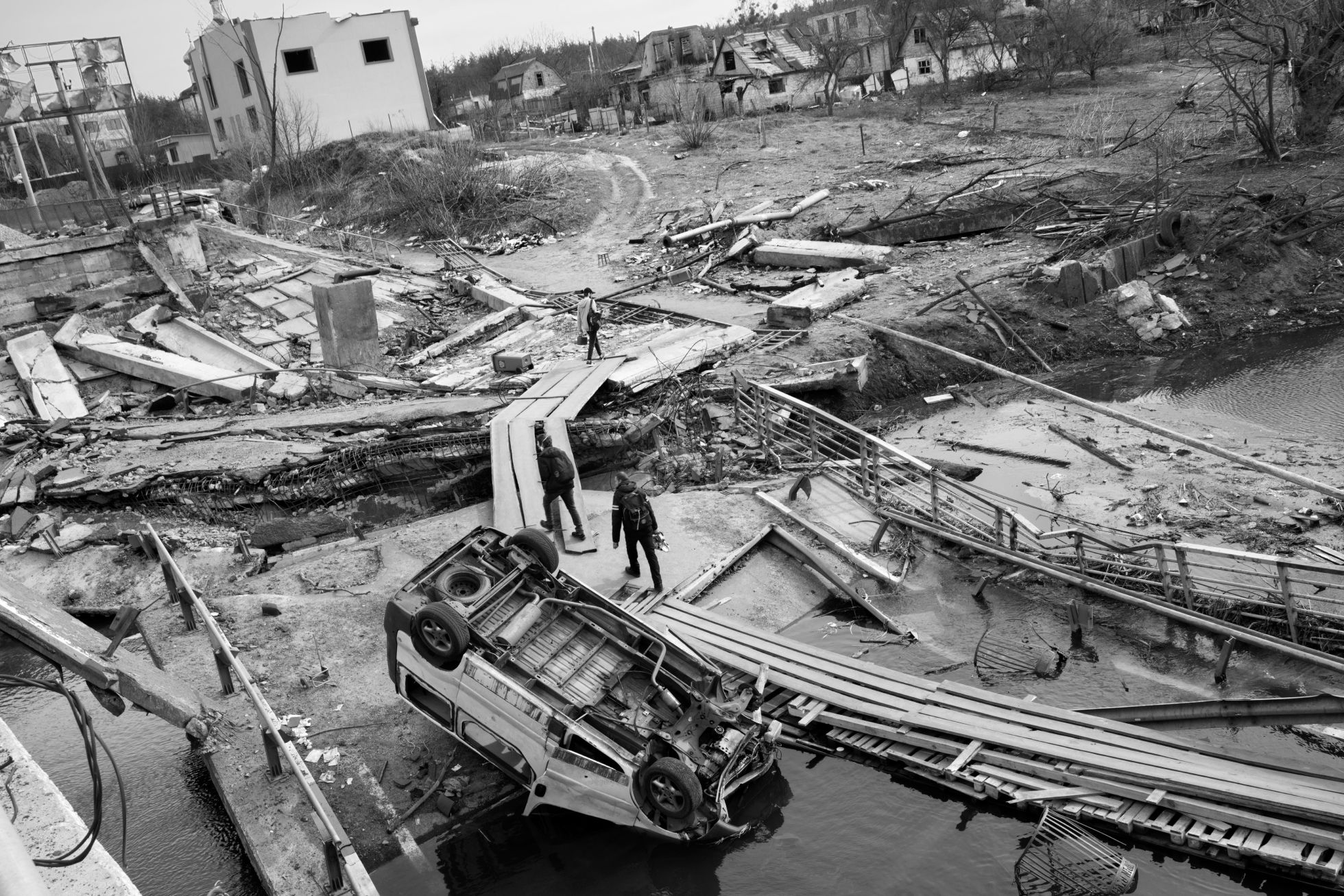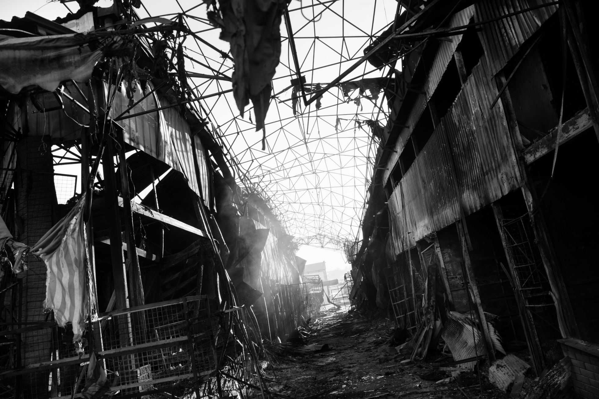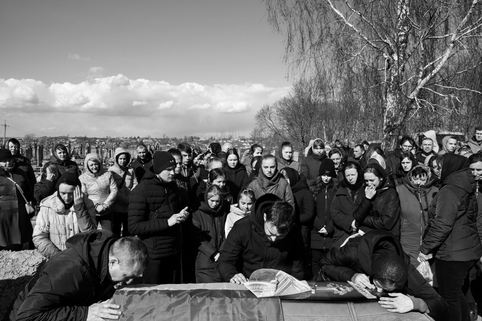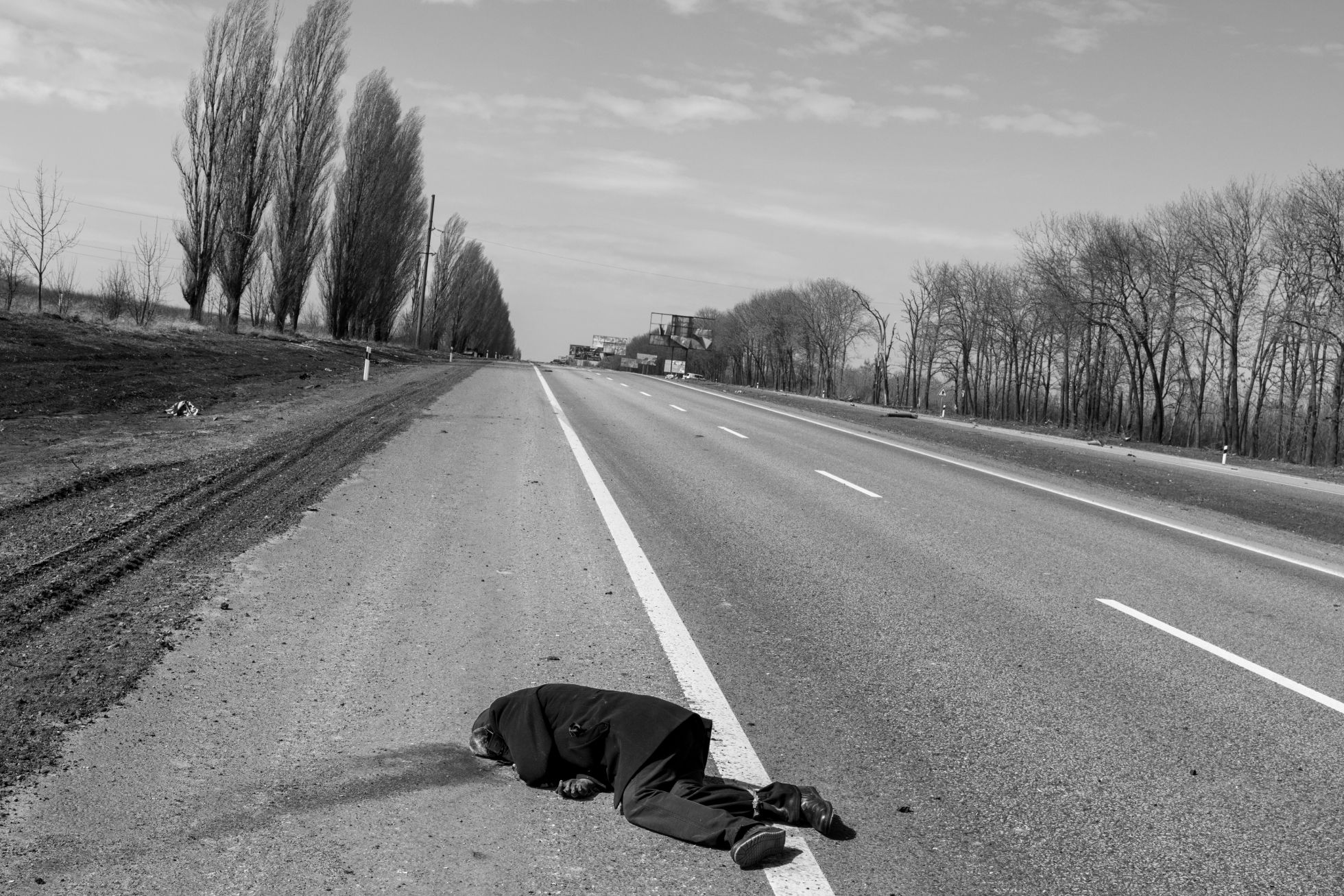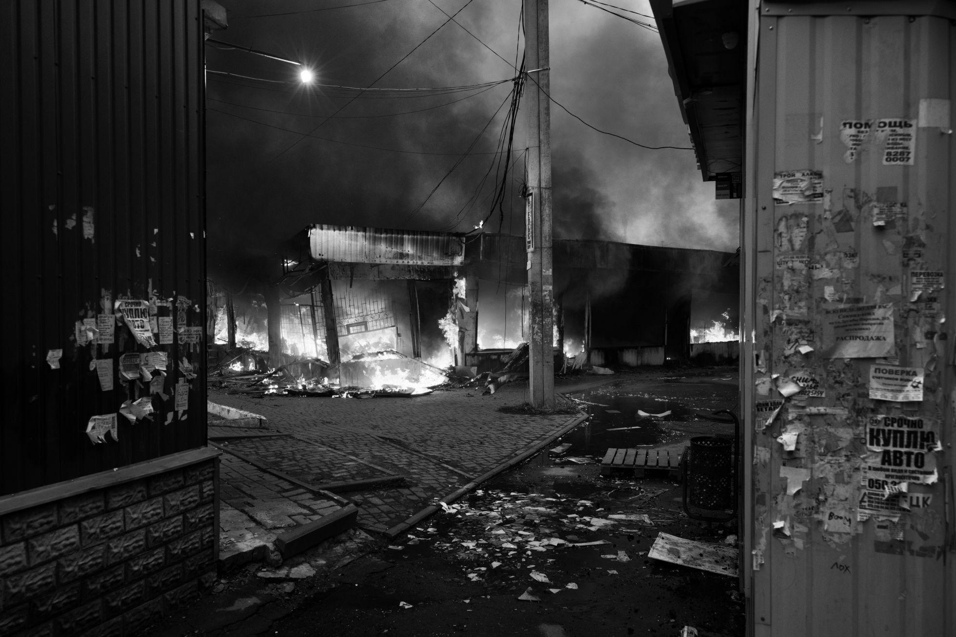Paolo Pellegrin / Magnum Photos Боец ВСУ в реабилитационном центре для военных с ПТСР в Харьковской области. Июнь 2023 годаPaolo Pellegrin / Magnum Photos Украинский танк ведет огонь по российским позициям в Донецкой области. 2023 годPaolo Pellegrin / Magnum Photos Украинские военные в траншее на передовой в неуказанном месте. 2023 годPaolo Pellegrin / Magnum Photos Позиции спецназа украинской армии на передовой в неуказанном месте. 2023 годPaolo Pellegrin / Magnum Photos Рынок «Барабашово» в Харькове после ракетного удара. 20 марта 2022 годаPaolo Pellegrin / Magnum Photos Житель Мариуполя Дмитрий Плаксин до сих пор хранит ключ от подвальной раздевалки городского драматического театра, где он с другими мариупольцами укрывался от обстрелов — до 16 марта 2022 года: в тот день российские войска разрушили здание, убив сотни мирных жителей (по первоначальным заявлениям украинских властей, погибли около 300 человек; агентство AP называло цифру в 600 жертв). Плаксину удалось спастись и эвакуироваться в Ужгород Закарпатской областиPaolo Pellegrin / Magnum Photos Украинская беженка на погранпереходе в польском городе Медыка, 8 марта 2022 года. По последним данным ООН, Польша приняла 1,9 миллиона украинских беженцев (речь о тех, кто регистрировался и подавал прошение об убежище)Paolo Pellegrin / Magnum Photos Монумент павшим во Второй мировой в центре Изюма Харьковской области, июнь 2023 года. Изюм был в оккупации с 1 апреля по 11 сентября 2022-го. После освобождения в городе нашли массовое захоронение с останками почти 450 человекPaolo Pellegrin / Magnum Photos Последствия удара по району Салтовка в Харькове. 31 марта 2022 годаPaolo Pellegrin / Magnum Photos Разбитые самолеты на аэродроме рядом с селом Чернобаевка неподалеку от Херсона, 2023 год. С 27 февраля по 11 ноября 2022-го Чернобаевка была оккупирована Россией — за этот период ВСУ не менее 25 раз атаковали аэропорт и колонны армии РФ вблизи селаPaolo Pellegrin / Magnum Photos Похороны 18-летнего украинского солдата Антона Родовенчука в селе Бабин Ивано-Франковской области. 8 апреля 2022 годаPaolo Pellegrin / Magnum Photos Пожарные пытаются потушить огонь в промышленном здании в Харькове после обстрела. 28 марта 2022 годаPaolo Pellegrin / Magnum Photos Волонтеры в Запорожье устанавливают ловушки, которые выводят из строя колесные транспортные средства. 25 марта 2022 годаPaolo Pellegrin / Magnum Photos Погибший мирный житель на обочине трассы между Чугуевом и Изюмом Харьковской области. 29 марта 2022 годаPaolo Pellegrin / Magnum Photos Село Афанасьевка Николаевской области во время наводнения, вызванного разрушением Каховской ГЭС, июнь 2023 года. В результате взрыва на плотине оказались полностью или частично затоплены 14 городов и сел с населением около 16 тысяч человек на правом берегу Днепра, и еще 14 с населением около 22 тысяч человек — на левом, оккупированном Россией. Погибли не менее 52 человекPaolo Pellegrin / Magnum Photos Жительница многоквартирного дома в районе Салтовка в Харькове на лестнице рядом с телом соседа, погибшего во время российского обстрела. 22 марта 2022 годаPaolo Pellegrin / Magnum Photos Настилы через реку Ирпень в Киевской области 7 апреля 2022 года — в первые дни после освобождения одноименного города от российской оккупации, за время которой погибли 269 мирных жителейPaolo Pellegrin / Magnum Photos Морг в Харькове с телами жертв российского обстрела села Гроза, случившегося 5 октября 2023 года. В результате атаки погибли более 50 мирных жителей — они собрались вместе, чтобы почтить память погибшего солдатаPaolo Pellegrin / Magnum Photos Военная база ВСУ в Ивано-Франко