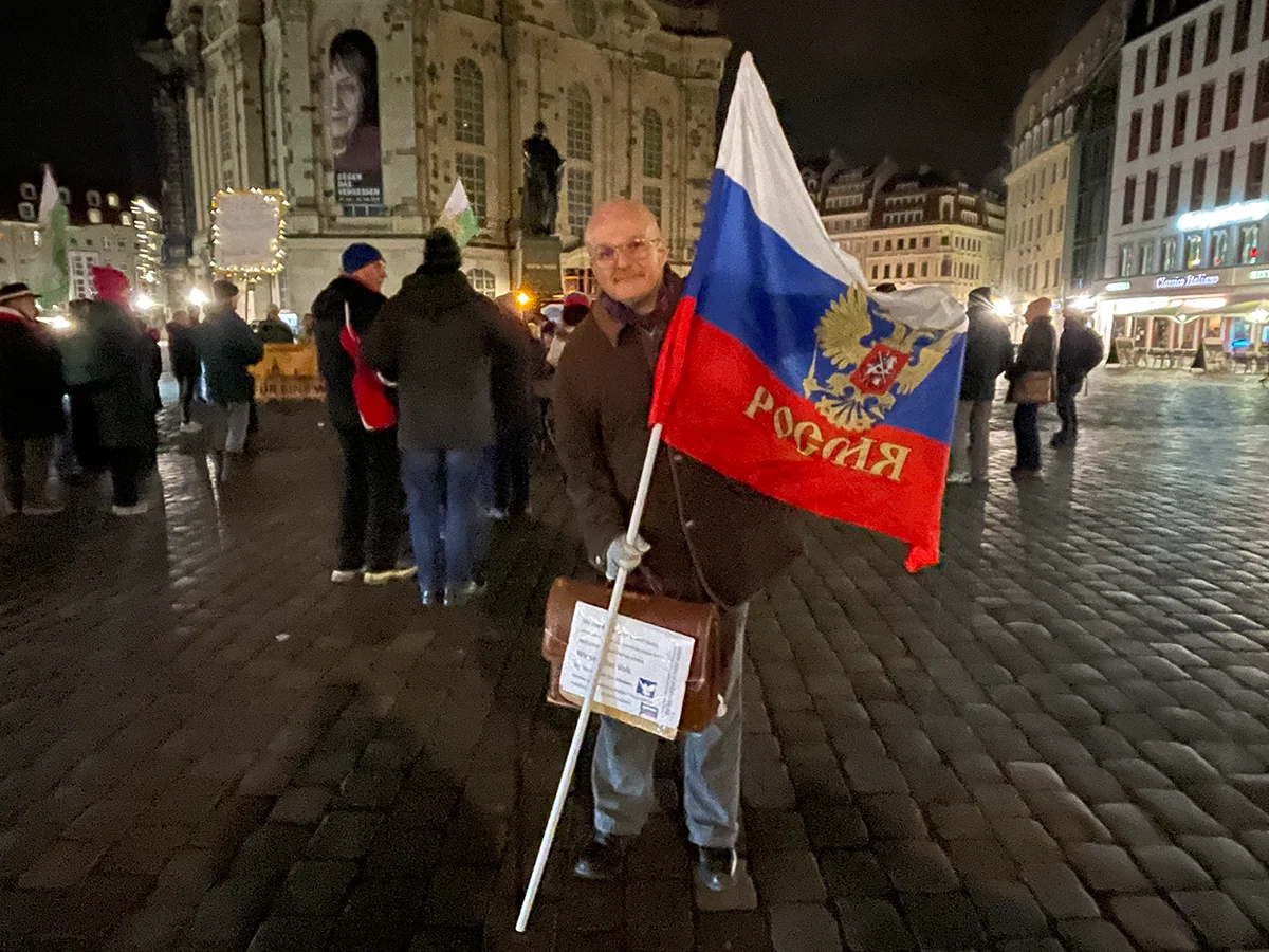Куда более откровенного сторонника России я встретил в тот же день вечером, когда стемнело и на улицу вышли «пацифисты». «Протесты запустила в Дрездене PEGIDA (“Патриотические европейцы против исламизации Европы”), но теперь их переняли другие правоэкстремисты — сепаратистская организация Freie Sachsen (“Свободные саксонцы”), и у них главная тема сейчас — война в Украине», — рассказал Максим Андреев.