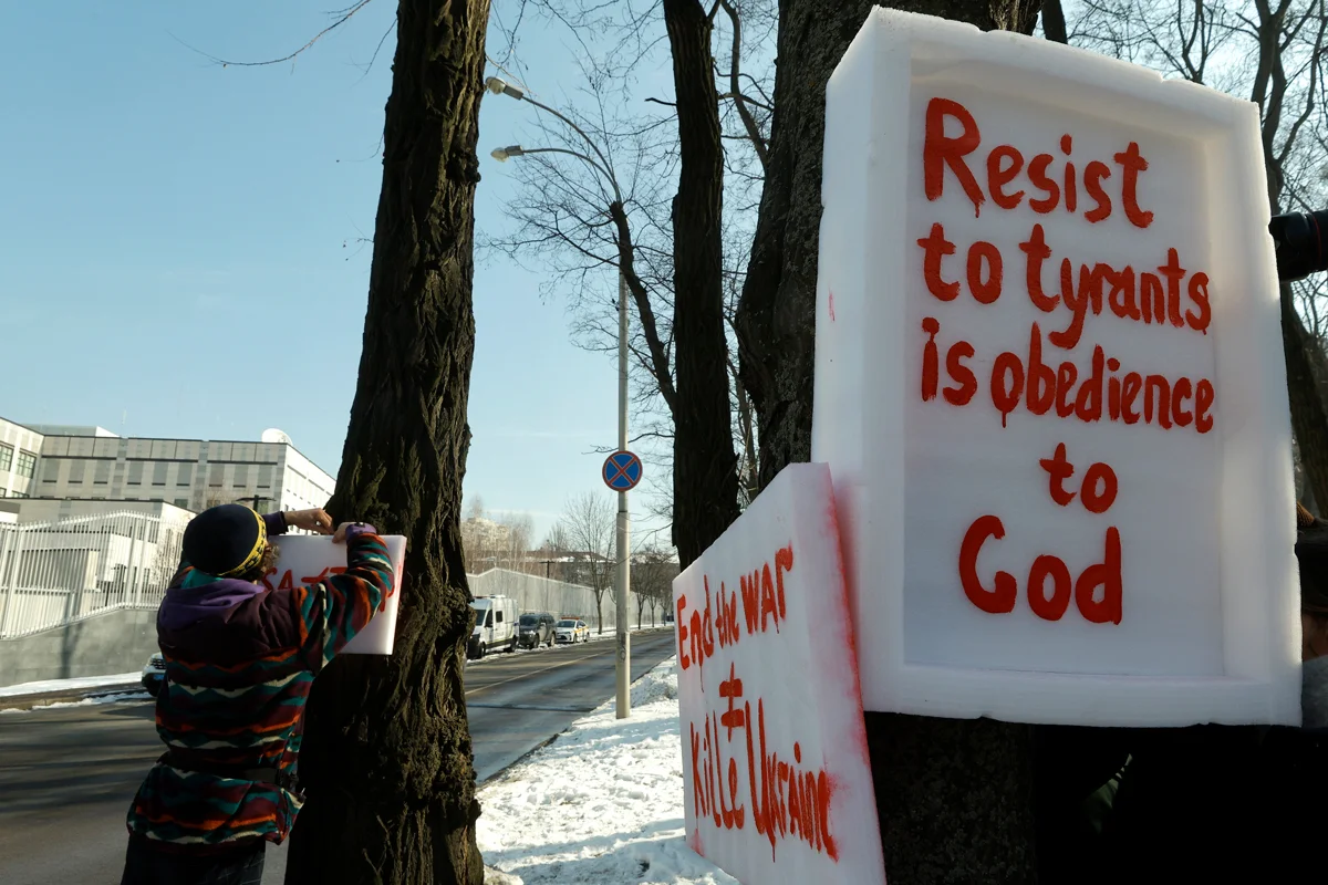 В Киеве возле американского посольства прошла немногочисленная акция протеста против давления новой администрации США на Украину
