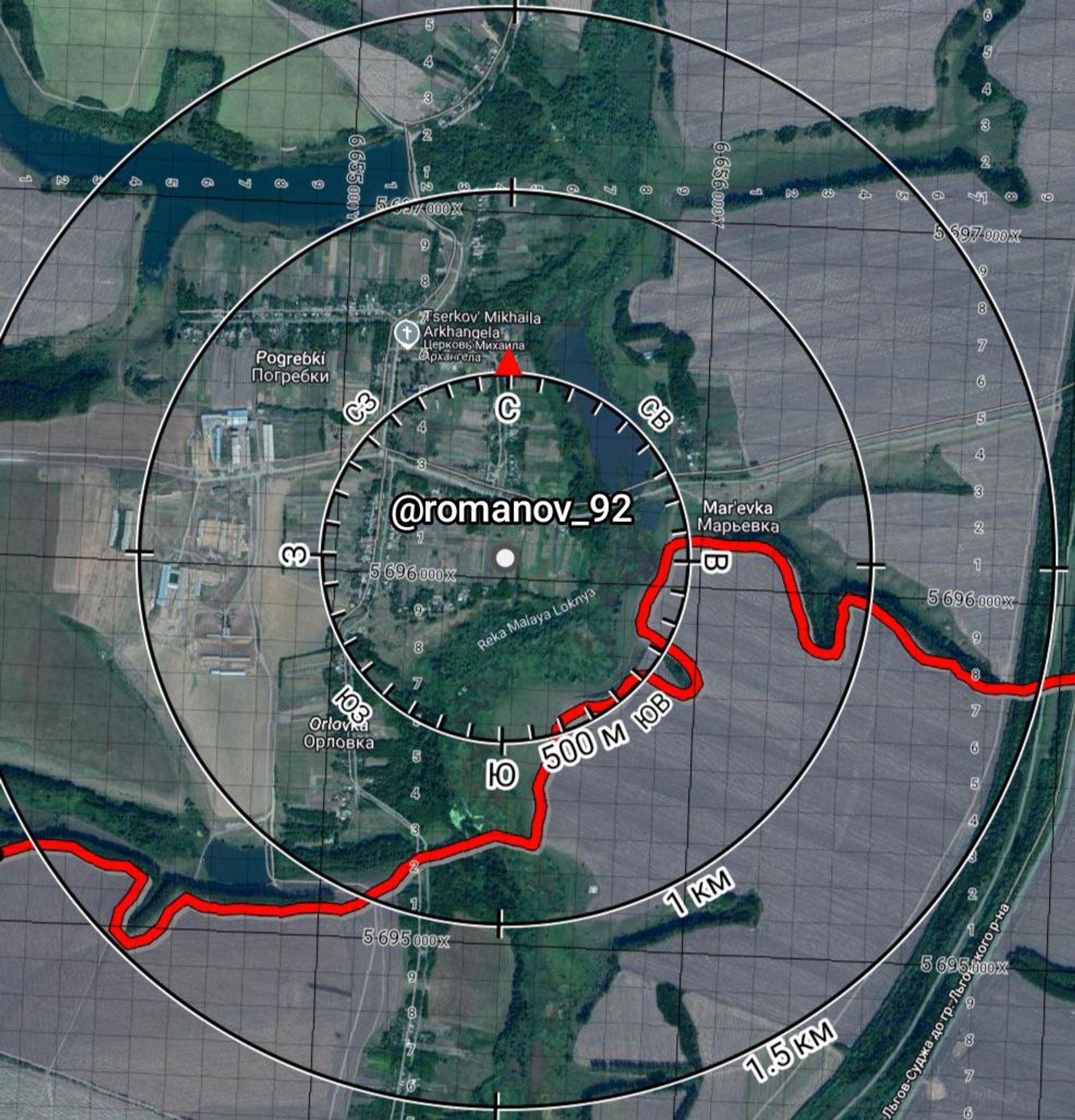 «Рыбарь» добавляет к вышеперечисленным успехам ВС РФ в Курской области продвижение в районе Лебедевки, описывая происходящее как новый этап российского контрнаступления на рубеж обороны вдоль реки Малая Локня с целью перерезать или максимально затруднить снабжение группировки ВСУ по трассе из Сумской области. Со своей стороны отметим, что до сих пор не появлялось визуальных свидетельств присутствия российских военных в каком-либо из объявленных освобожденными населенных пунктов, кроме Погребков на самом севере украинского плацдарма.