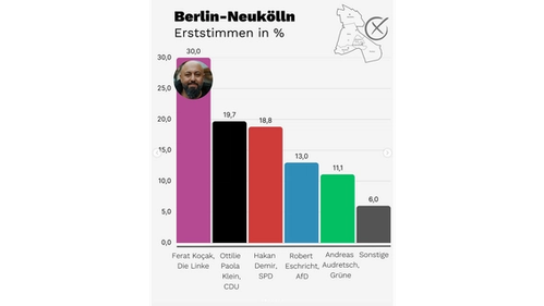 Ферат избирался в своем родном Нойкельне. Это район западного Берлина, который известен обилием мигрантов. Сначала турецких, которые приезжали в Германию с 1970-х, а затем и сирийских в 2010-е. Сегодня на улицах также можно часто услышать украинскую и русскую речь. Район считается модным, но в то же время злачным и небезопасным. Кажется, как раз в таком левацком и мигрантском районе у Ферата было больше всего шансов победить на выборах, но на самом деле с ним соревновалось несколько других левых кандидатов, в том числе бывший депутат от района от социал-демократов (тоже турецкого происхождения) и кандидатка от «Зеленых».