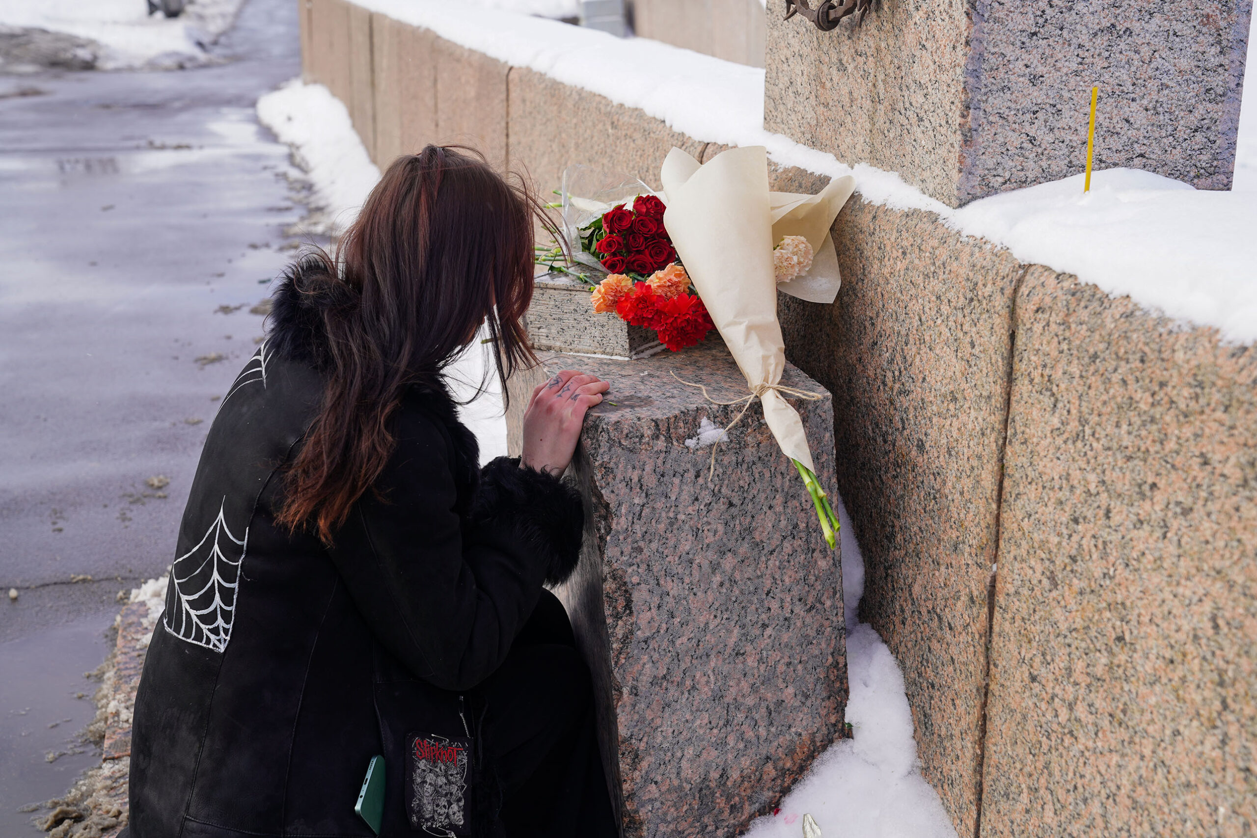 В годовщину со дня смерти Алексея Навального петербуржцы несли цветы и записки к Соловецкому камню, к памятнику жертвам политических репрессий, памятникам Тарасу Шевченко и Сахарову. Цветы убирали коммунальщики, петербуржцев задерживали — в отделах полиции оказались минимум четверо.