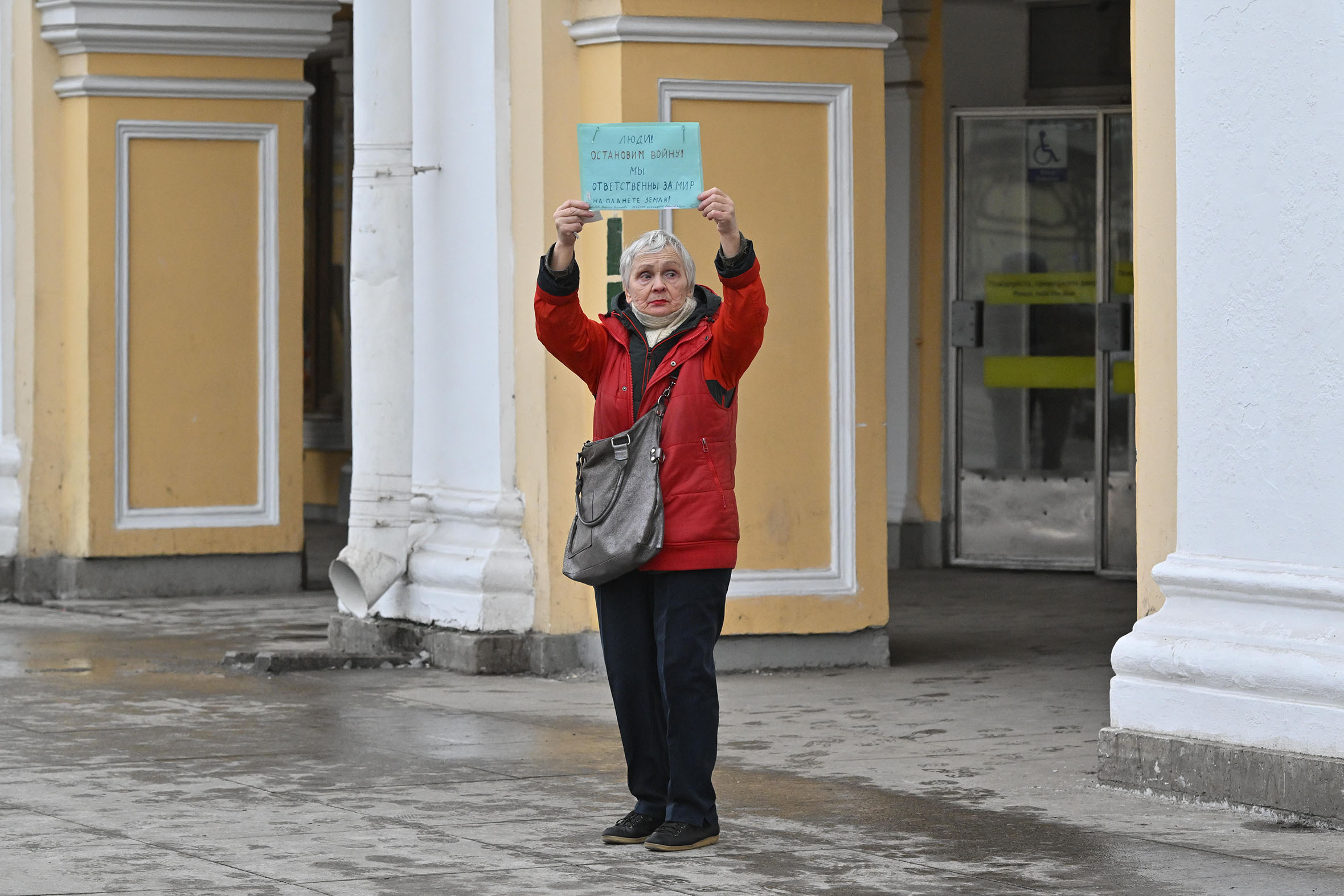 24 февраля, в годовщину российского вторжения в Украину, блокадница Людмила Васильева вышла в антивоенный пикет — полиция не стала ее задерживать.