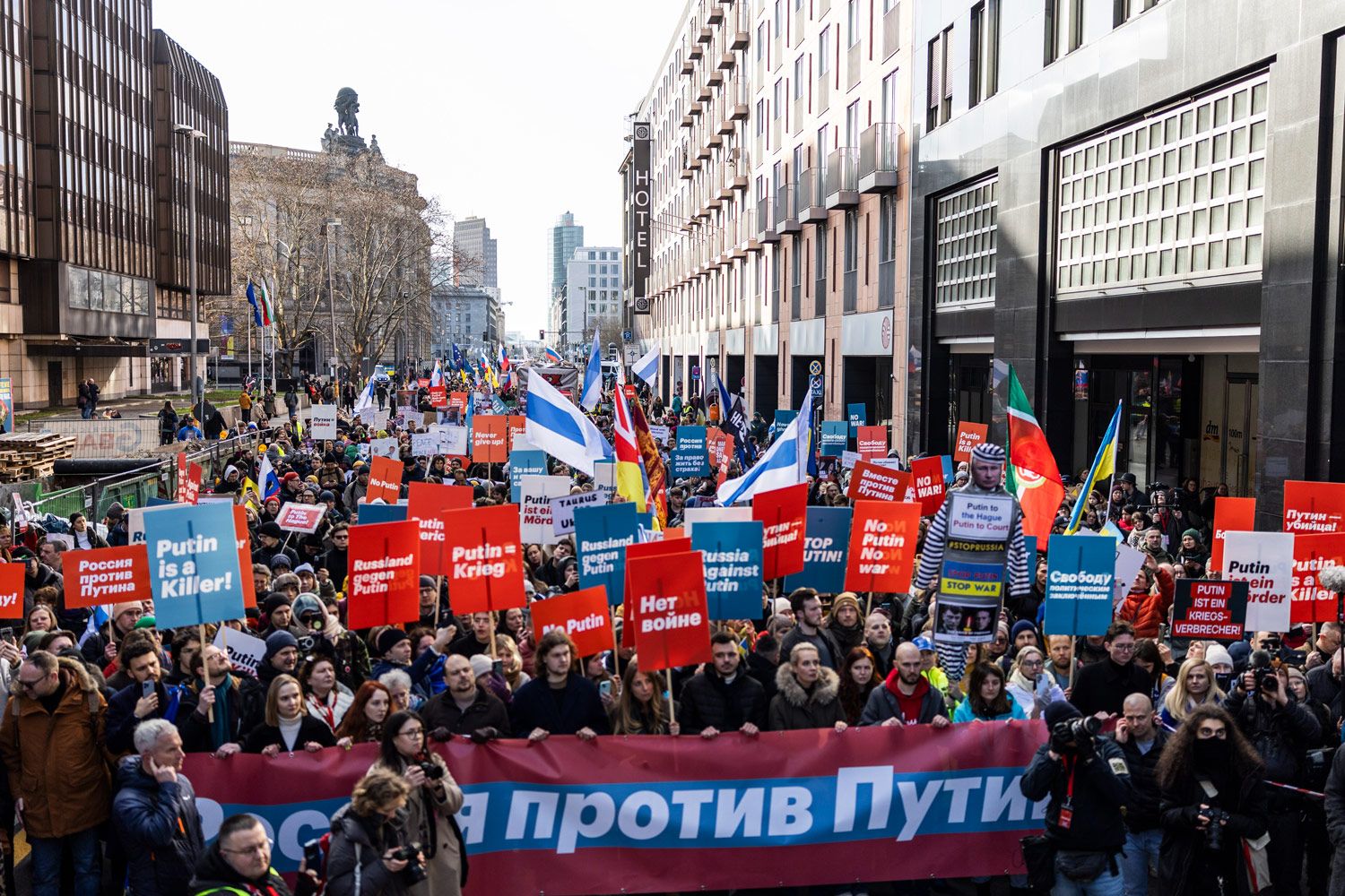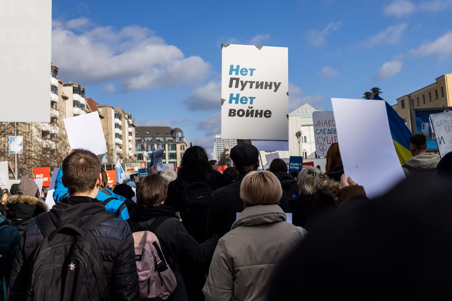На момент начала марша на Потсдамер-платц собрались 250-300 человек, позже их число увеличилось до примерно 500 человек. Некоторые участники акции пришли с российскими триколорами, а также с украинскими и бело-сине-белыми флагами.