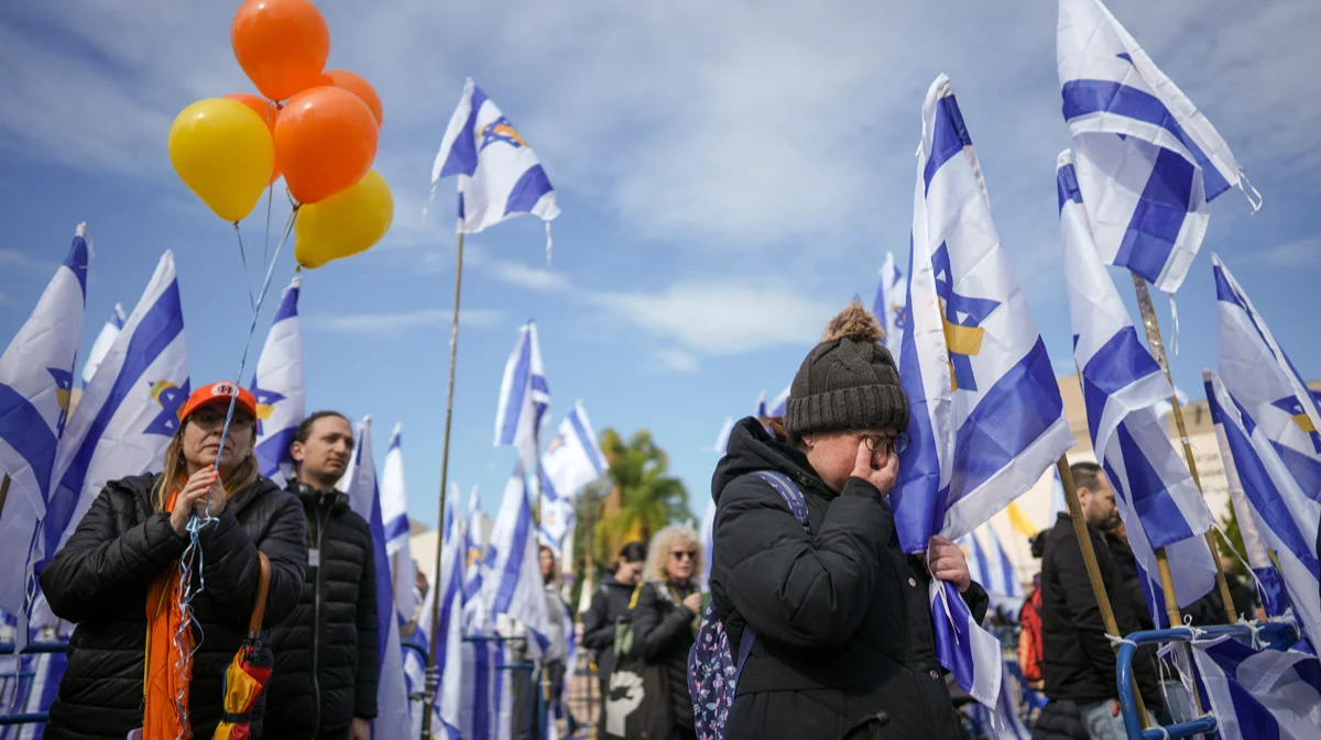 Собравшиеся на Площади заложников в Тель-Авиве, Израиль, 20 февраля 2025 года. Фото: Oded Balilty / AP Photo / Scanpix / LETA