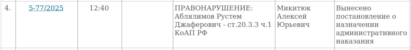 «Используя свою социальную страницу, он опубликовал контент в виде интервью Президента Украины, в котором он высказывается против территориальной целостности Российской Федерации, чем осуществил публичные действия, направленные на дискредитацию использования Вооруженных сил РФ в целях защиты интересов РФ и ее граждан, то есть совершил админправонарушение, предусмотренное ч. 1 ст. 20.3.3 КоАП РФ (дискредитация Вооруженных сил РФ – КР)», – говорится в материалах дела.