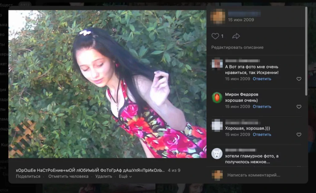 Для подкаста журналистка Настя Красильникова также поговорила с еще одной девушкой, Леной (имя изменено). Та рассказала, что была активна на «стене» Оксимирона во «ВКонтакте» в начале 2010-х годов и что Оксимирон начал писать ей, когда ей было 15, и более активно они стали переписываться, когда ей исполнилось 16.