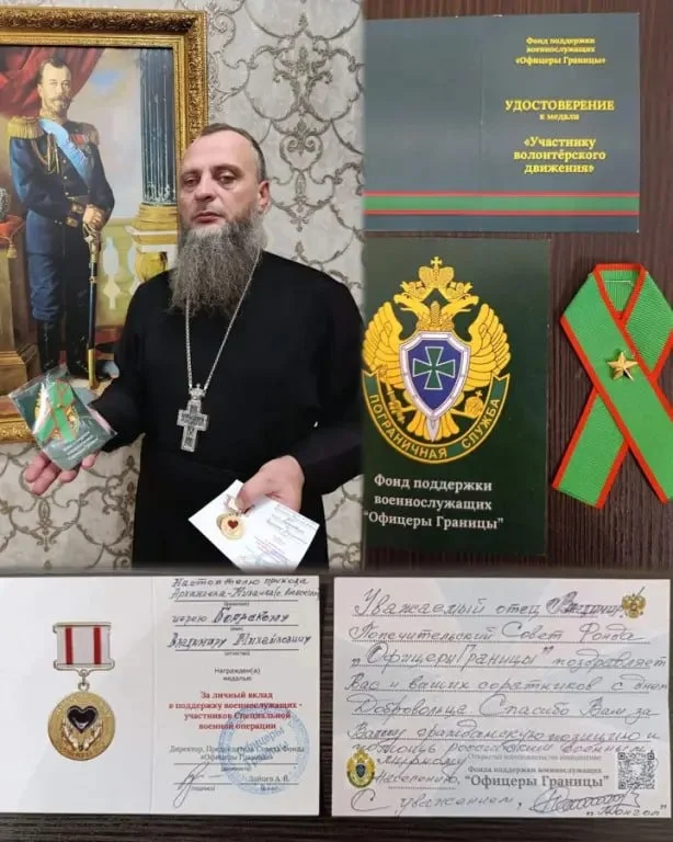 За него тогда, по слухам, заступились российские военные, которым он освящал технику и передавал еду. Некоторые ветеранские и добровольческие организации, причастные к СВО (в частности, союз ветеранов пограничных войск «Офицеры границы»), наградили священника медалями и грамотами.