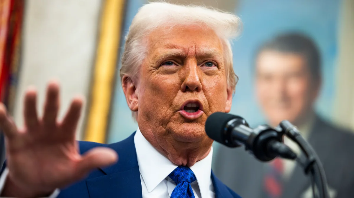 Дональд Трамп выступает перед СМИ в Овальном кабинете Белого дома, Вашингтон, США, 12 февраля 2025 года. Фото: Jim Lo Scalzo / EPA