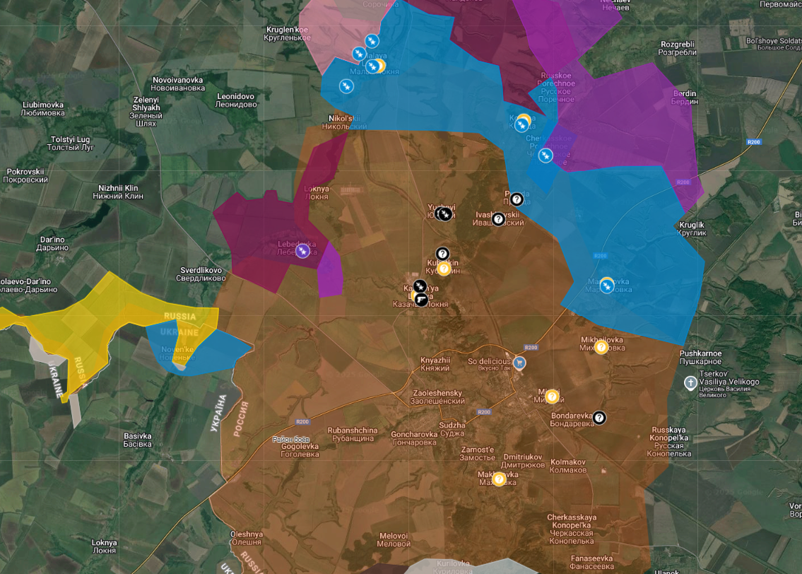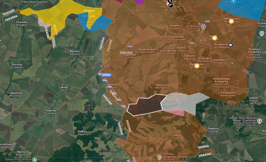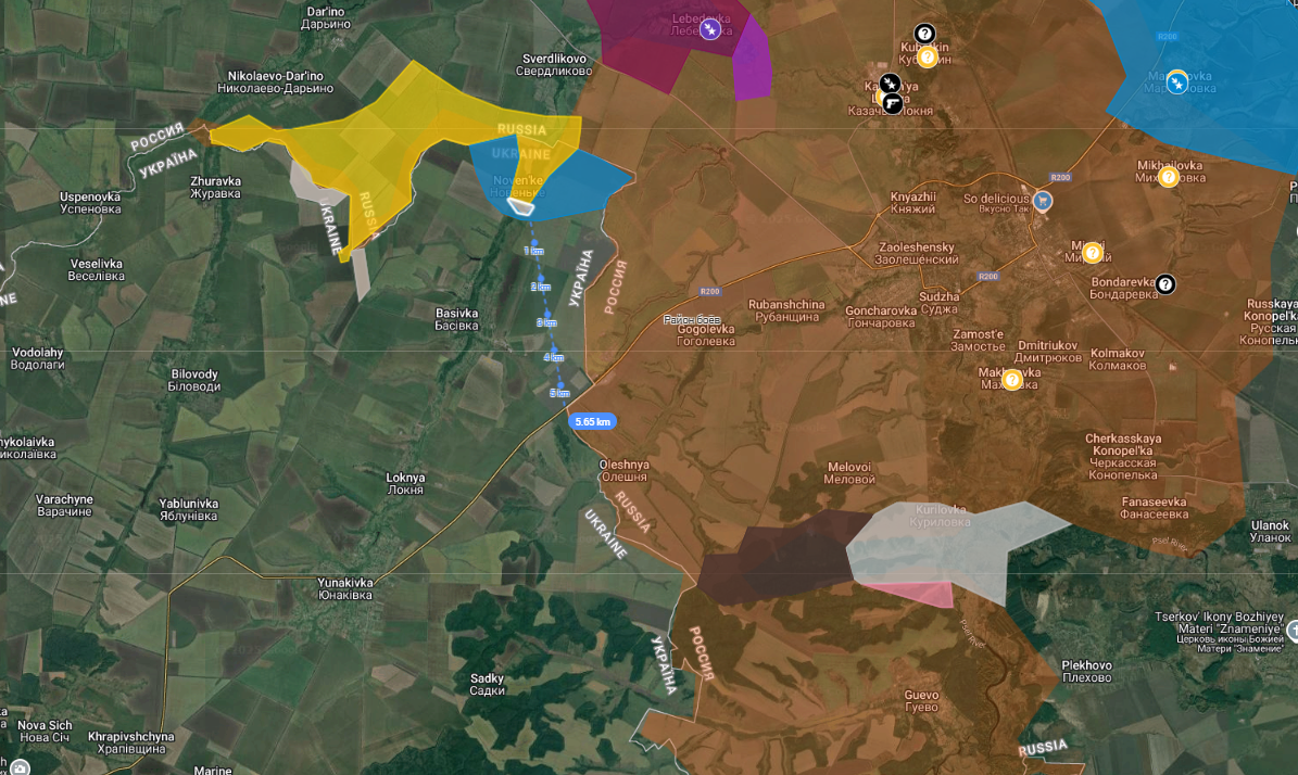 Когда же они заняли посадки в районе Журавки и Новенького (сёла в Сумской области), появился риск не просто контроля с воздуха, а уже и наземного. Грубо говоря, дорога уже может простреливаться танковыми выстрелами. Получается, что они идут сложной клешнёй со стороны Куриловки и Свердликова, но пока закрыть эту клешню им не удаётся.