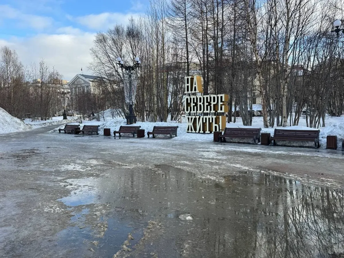 Сейчас Мурманск готовится к Арктическому форуму, ждут Путина (хотя официально не объявлено и вообще под большим вопросом). Дороги бросились наконец чистить. Со снегом местами сошел асфальт, в том числе тот, что положили в прошлом году… На пересечении трех проспектов гоголевская лужа да глубокая скользкая колея. В луже отражается надпись: «Мурманск — столица Арктики».