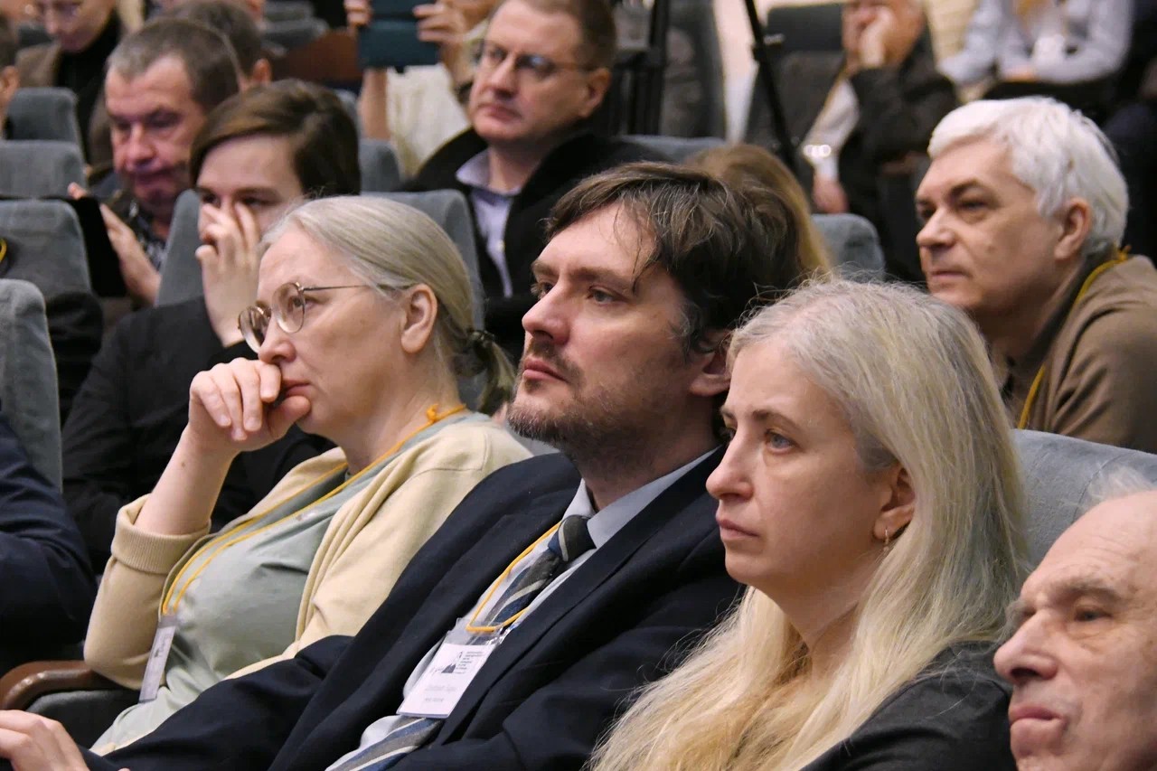 Утреннюю сессию открыл Юрий Мурин, начальник научно-методического отдела кремниевых трековых систем лаборатории физики высоких энергий ОИЯИ, с обзорным докладом о настоящем и будущем детекторных систем в релятивистской ядерной физике. Особое внимание было уделено прогрессу в развитии технологии MAPS, разрабатываемой коллаборацией ALICE в ЦЕРНе, и планам экспериментов ATLAS и CMS по внедрению устройств на базе LGAD (Low-Gain Avalanche Diode, лавинных диодов с низким коэффициентом усиления). Докладчик подчеркнул необходимость преодоления отставания России в области современной микроэлектроники для детекторных систем и отметил важную роль РАН как координирующего органа в этом направлении.