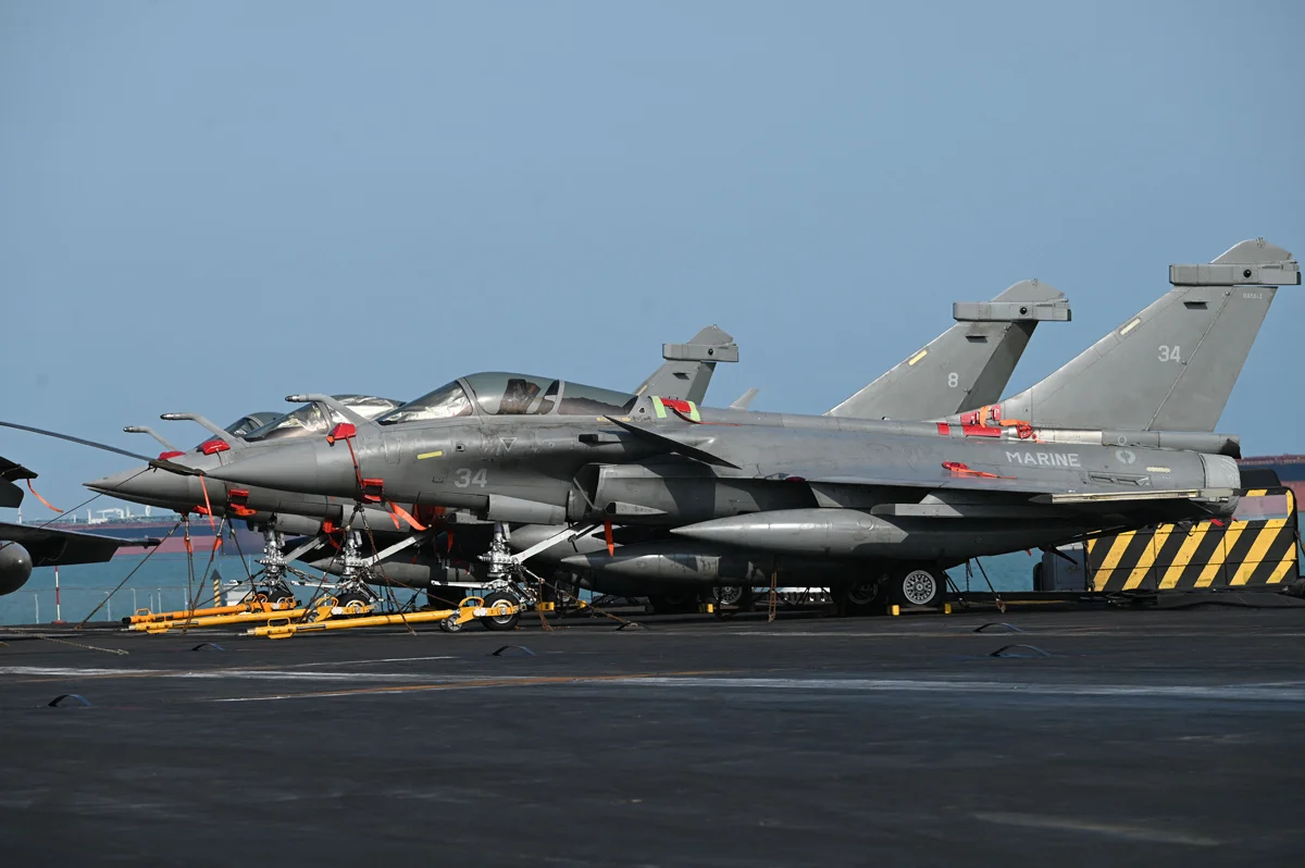40 французских истребителей — наземного базирования, еще 10 — палубного. Последние при необходимости могут использовать для взлета атомный авианосец «Шарль де Голль», но не находятся на нем постоянно.