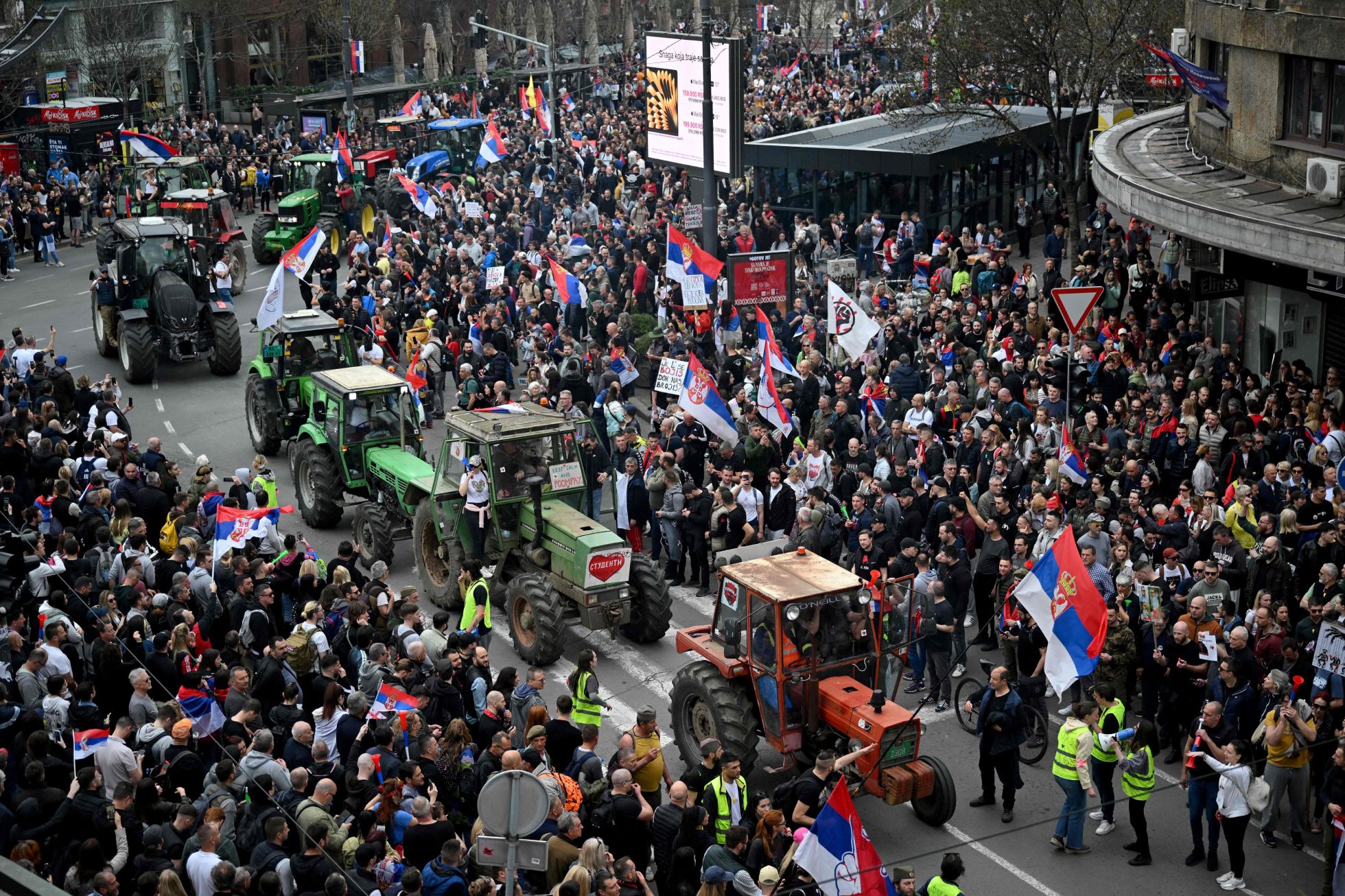 В Белграде больше 100 тысяч человек протестуют против правительства. Фермеры приехали на тракторах. Фотография