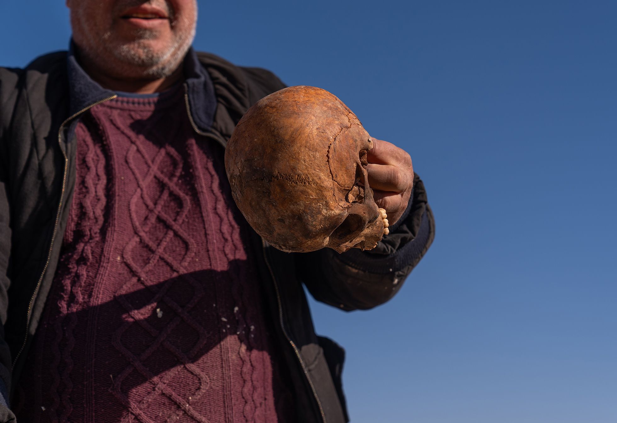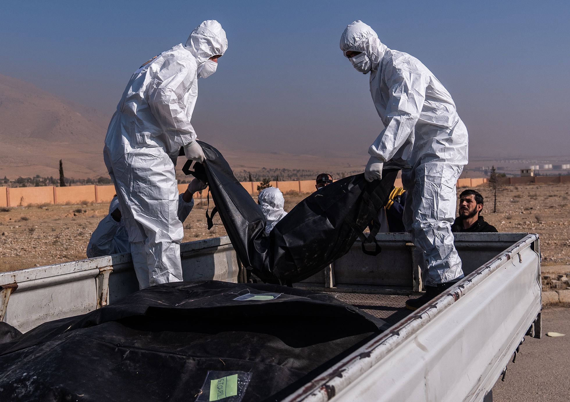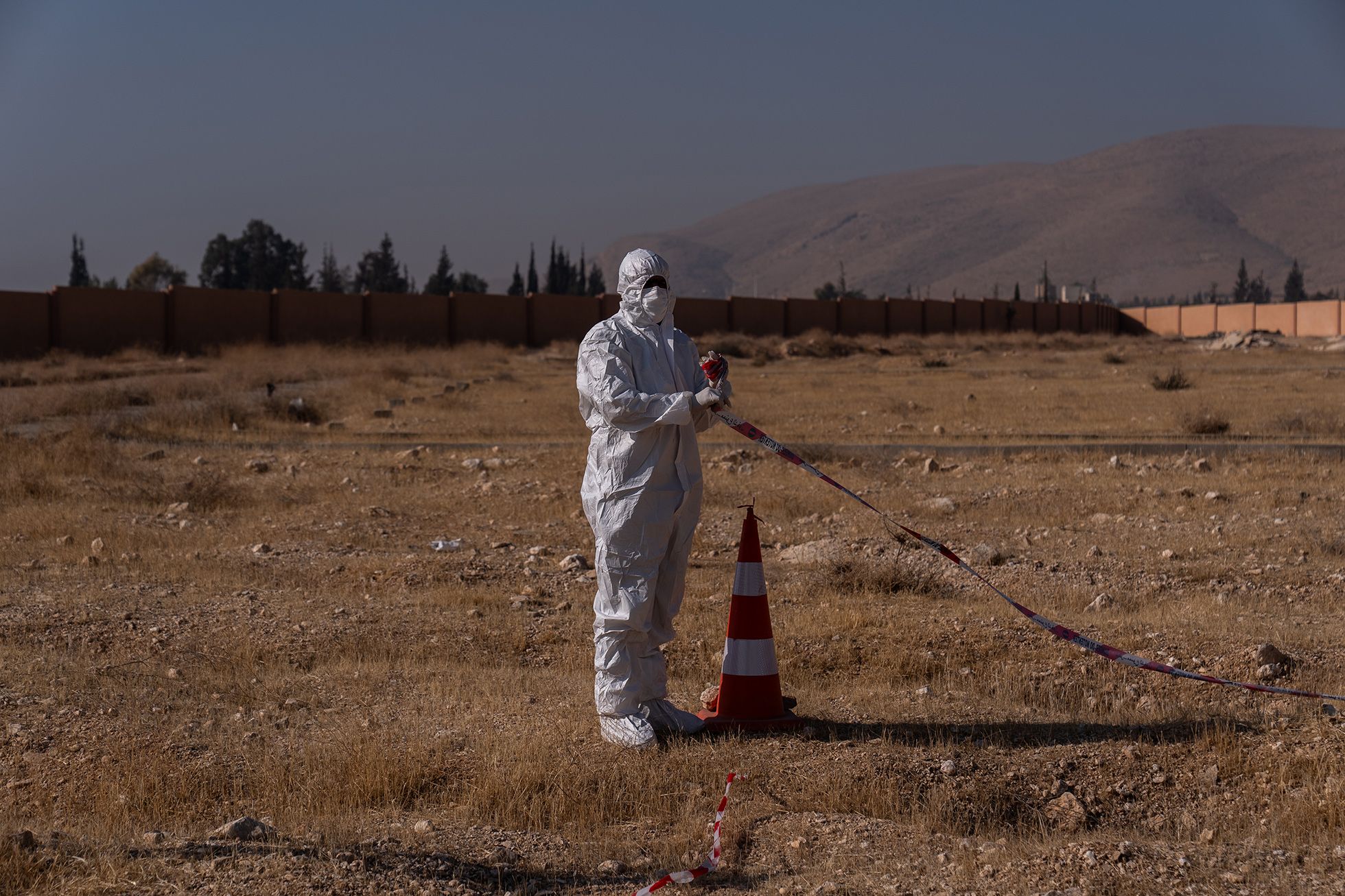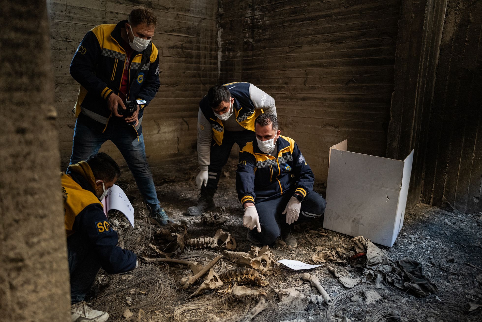 Волонтерская организация «Белые каски» появилась в Сирии в 2014 году, во время гражданской войны. Она доставляла гуманитарную помощь, эвакуировала мирных граждан из зон боевых действий, разбирала завалы и хоронила погибших. С тех пор как в декабре 2024 года пал режим Башара Асада, она отыскивает братские могилы жертв гражданской войны и занимается идентификацией и перезахоронением погибших. По приблизительным оценкам, около 150 тысяч человек, убитых режимом в ходе карательных операций, остались без достойного погребения.