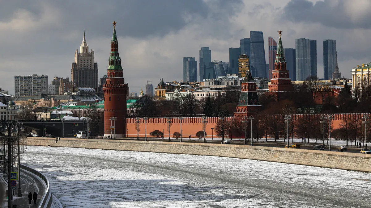Moscow’s Kremlin as seen from across the frozen Moskva River, 19 February 2025. Photo: EPA-EFE / MAXIM SHIPENKOV