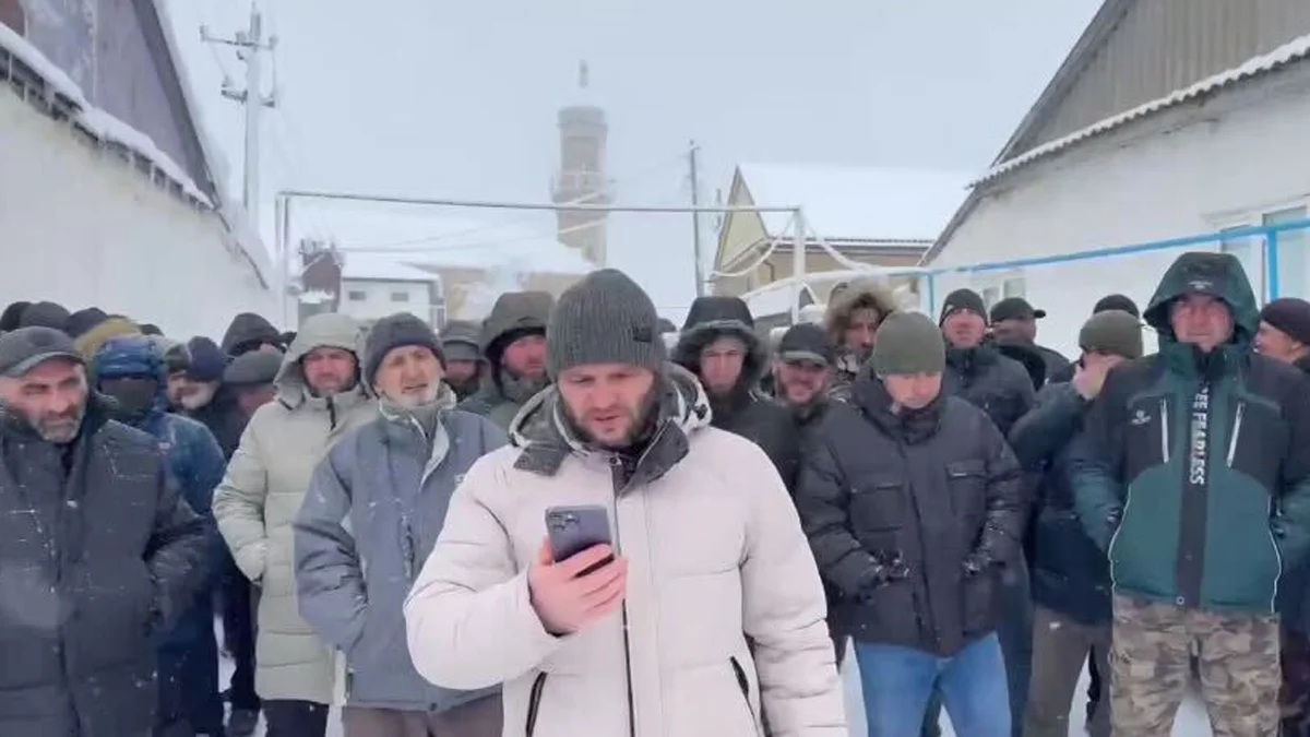 Разгневанные хубарцы записали видеообращение. На видео можно видеть несколько десятков человек, депутат Рашид Исаков стоит впереди них и зачитывает обращение сельчан: