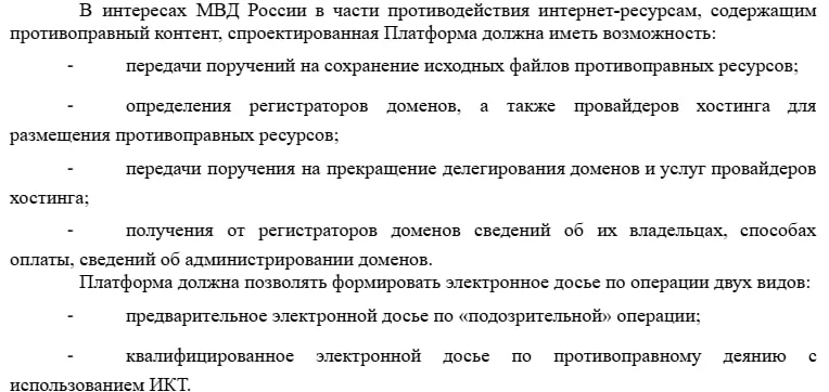 Среди заявленных целей платформы — «упрощение и ускорение сбора доказательной базы для расследования противоправных деяний в виде квалифицированного электронного досье».
