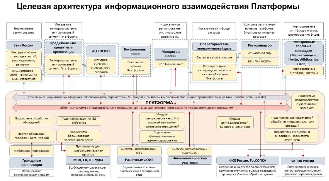 К системе должны будут подключить ЦБ, банки, страховые компании, Росфинмониторинг, Роскомнадзор, МВД, ФСБ, Генпрокуратуру, Следственный комитет, суды, операторов связи, провайдеров, соцсети, маркетплейсы и так далее. Сама платформа будет разделена на центральный и локальные сегменты, а также на мобильное приложение.