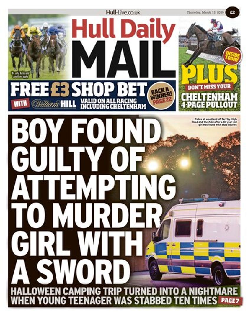 Это грубая фальшивка. На самом деле первая полоса соответствующего номера Hull Daily Mail выглядит так.