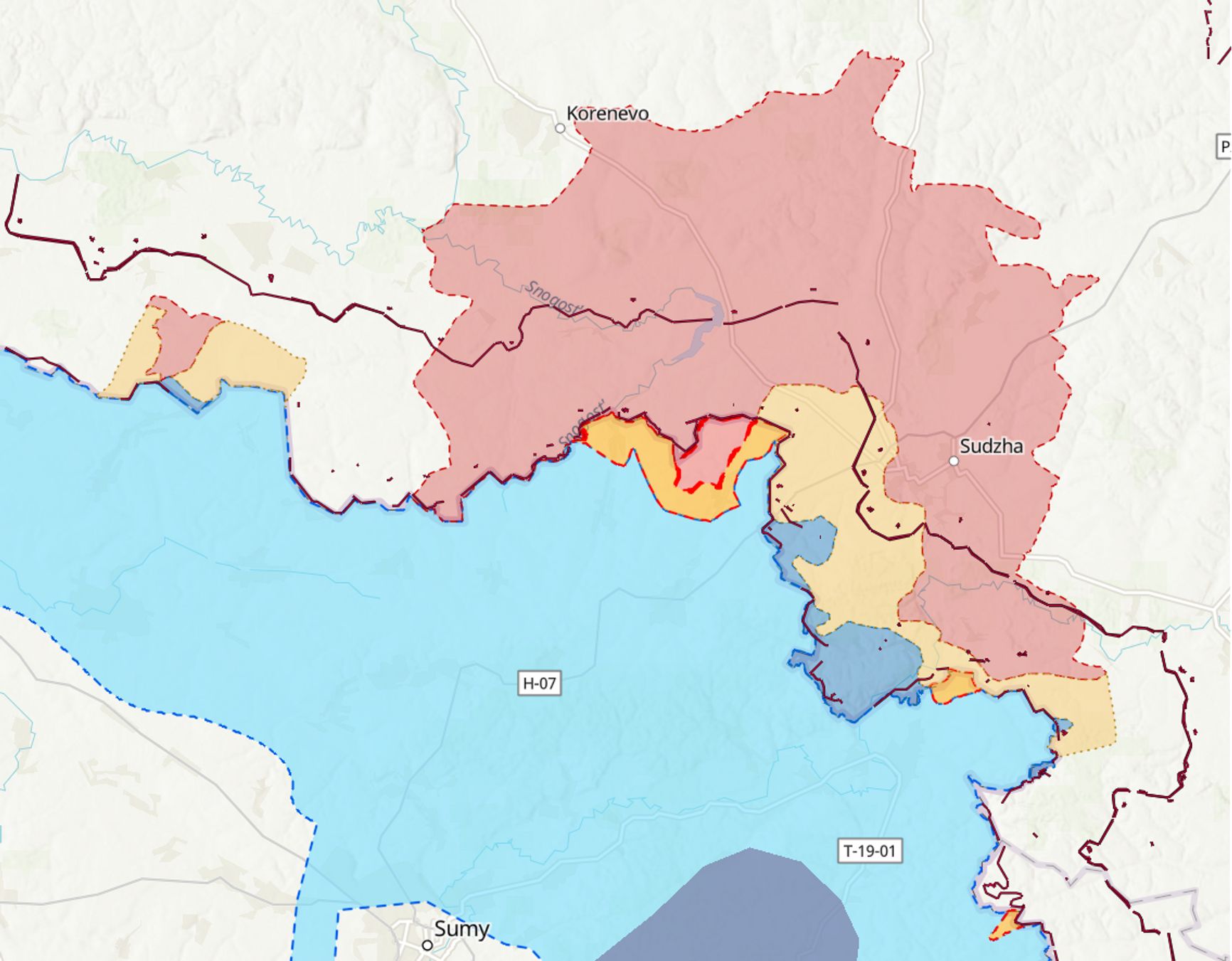 То же можно заметить и на карте Института изучения войн (ISW), и на карте независимого украинского проекта DeepStateMAP.