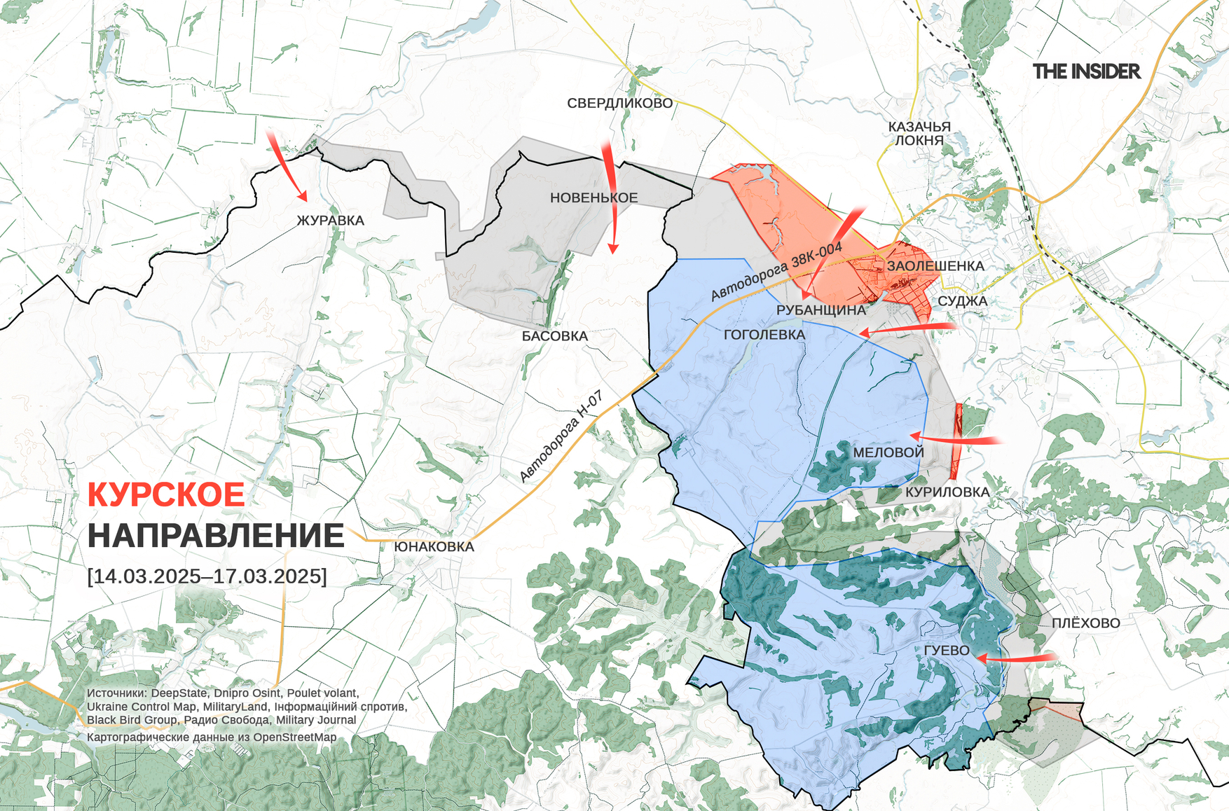 DeepState сообщил о переходе Суджи и Рубанщины под контроль российских войск. Отход украинских войск из Суджи подтвердил и Генштаб ВСУ. Минобороны РФ заявляет об освобождении Заолешенки и Рубанщины.