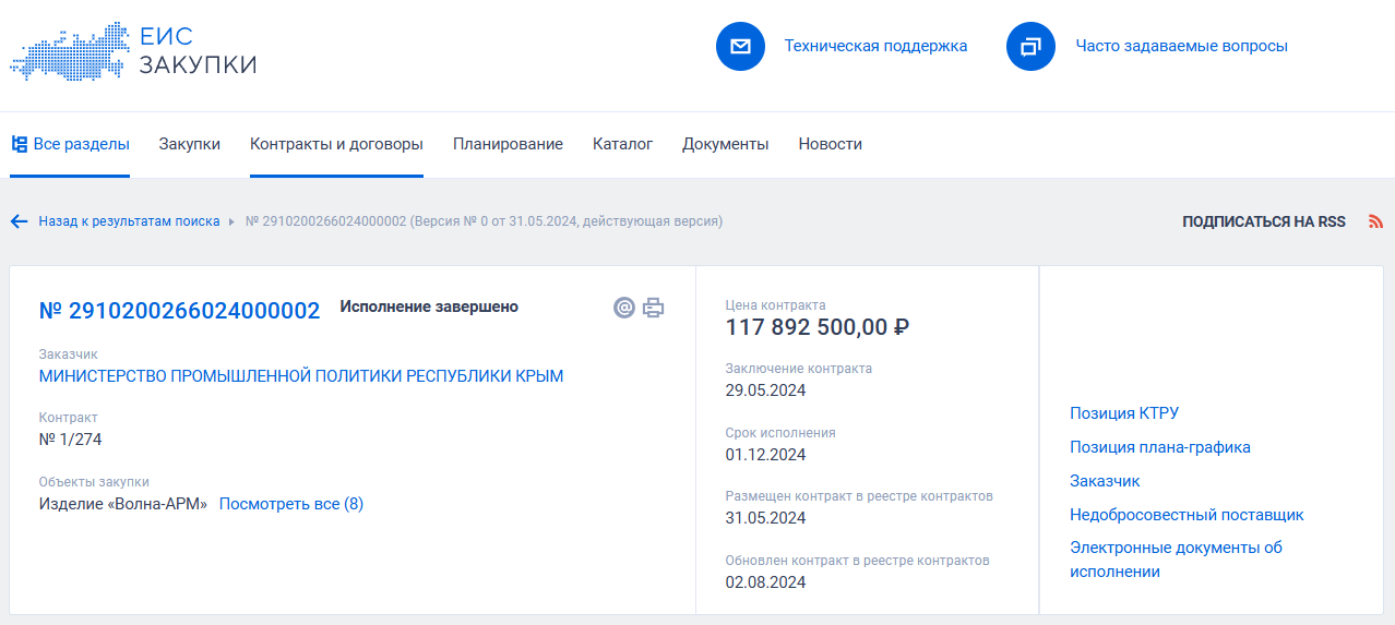 - После встречи с Путиным оборудование «Русского купола» начали закупать для военных, выяснило «Агентство». В мае 2024 года Минпромторг Крыма приобрел у компании 38 изделий за 118 млн рублей для 37-го смешанного авиаполка, который дислоцируется на авиабазе «Гвардейское» в пригороде Симферополя. Поставленные изделия восьми типов способны создавать помехи в каналах управления «кустарными БПЛА» и FVP-дронами, в диапазонах систем спутниковой навигации и мобильных сетей, обнаруживать сигналы передачи данных телеметрии или видеопотока БПЛА.
