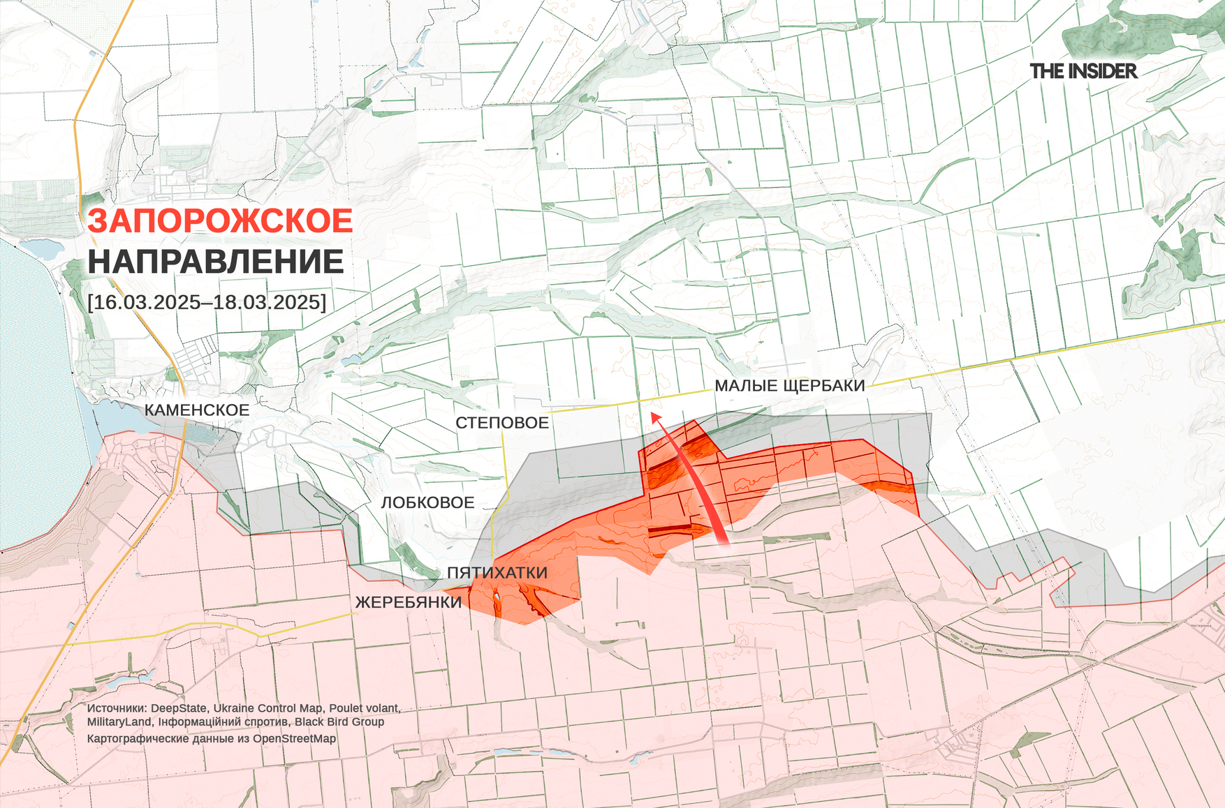 На запорожском направлении ВС РФ ведут штурмы рубежа обороны Пятихатки — Малые Щербаки.