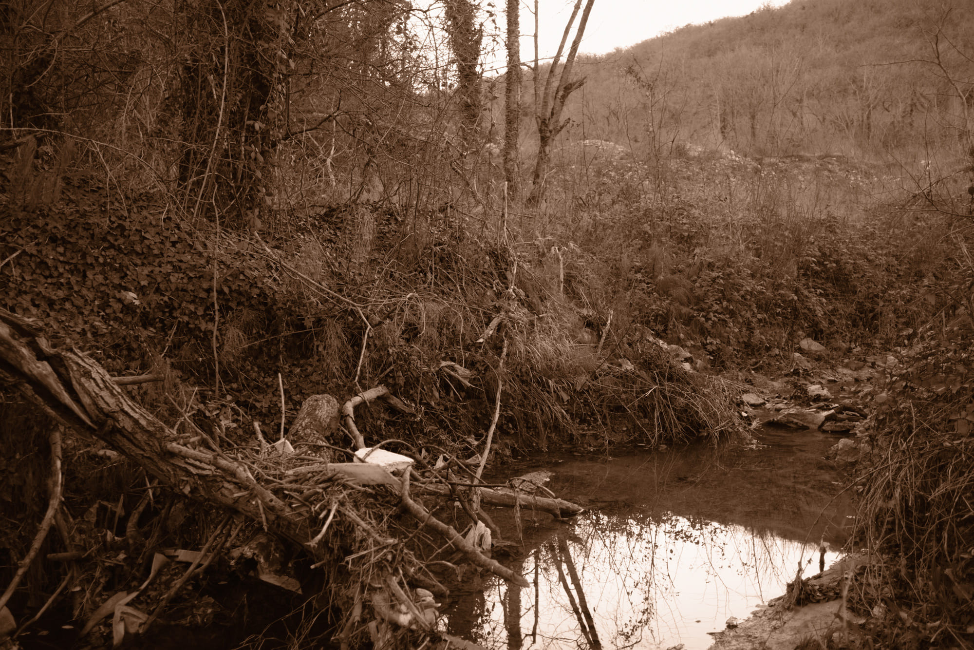 С Владимиром, активным участником протестов против расширения свалки, мы встречаемся в центре Новороссийска. Он предлагает отправиться на противоположную от Борисовки сторону горы Щелба, чтобы посмотреть, как фильтрат с полигона попадает в ручьи и почву, а оттуда, по его словам, с подземными водами и в скважины селян.
