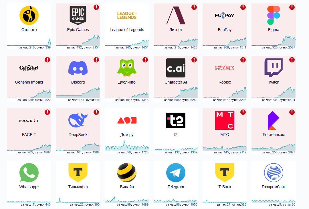 Согласно данным портала «Сбой.рф», сложности испытывают клиенты сразу нескольких российских провайдеров. Кроме того, в ряде регионов фиксируются сбои в работе мобильных операторов, а также проблемы с доступом к сервисам американского CDN-провайдера Cloudflare, что подтверждают данные Downdetector.