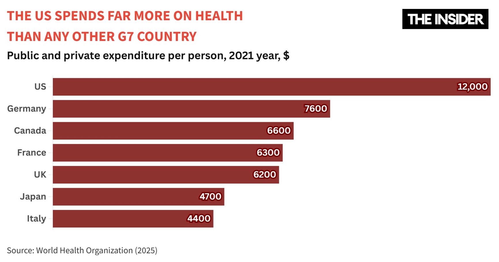 The United States spends more on healthcare than any other G7 country, according to a March study by the Our World in Data project. Yet among G7 nations, the U.S. ranks last in life expectancy and lags behind on most other health indicators. Healthcare has long been a central issue in American politics, and the debate only intensified after Luigi Maggione, outraged by the system’s injustices, killed a top executive of the country’s largest health insurance company. Amid the uproar, Donald Trump vowed to fix America’s “inefficient” healthcare system. So far, however, his only proposal has been to make medical service prices more transparent, a measure that experts argue will do little to improve healthcare accessibility. The root of the problem is far deeper: the U.S. is the only developed country without universal government health insurance. Not only does Trump oppose introducing such a system, but he even tried to repeal its weaker alternative — Obamacare — which had greatly increased the number of insured Americans. Meanwhile, about a third of Americans are forced to forgo necessary medications due to costs.