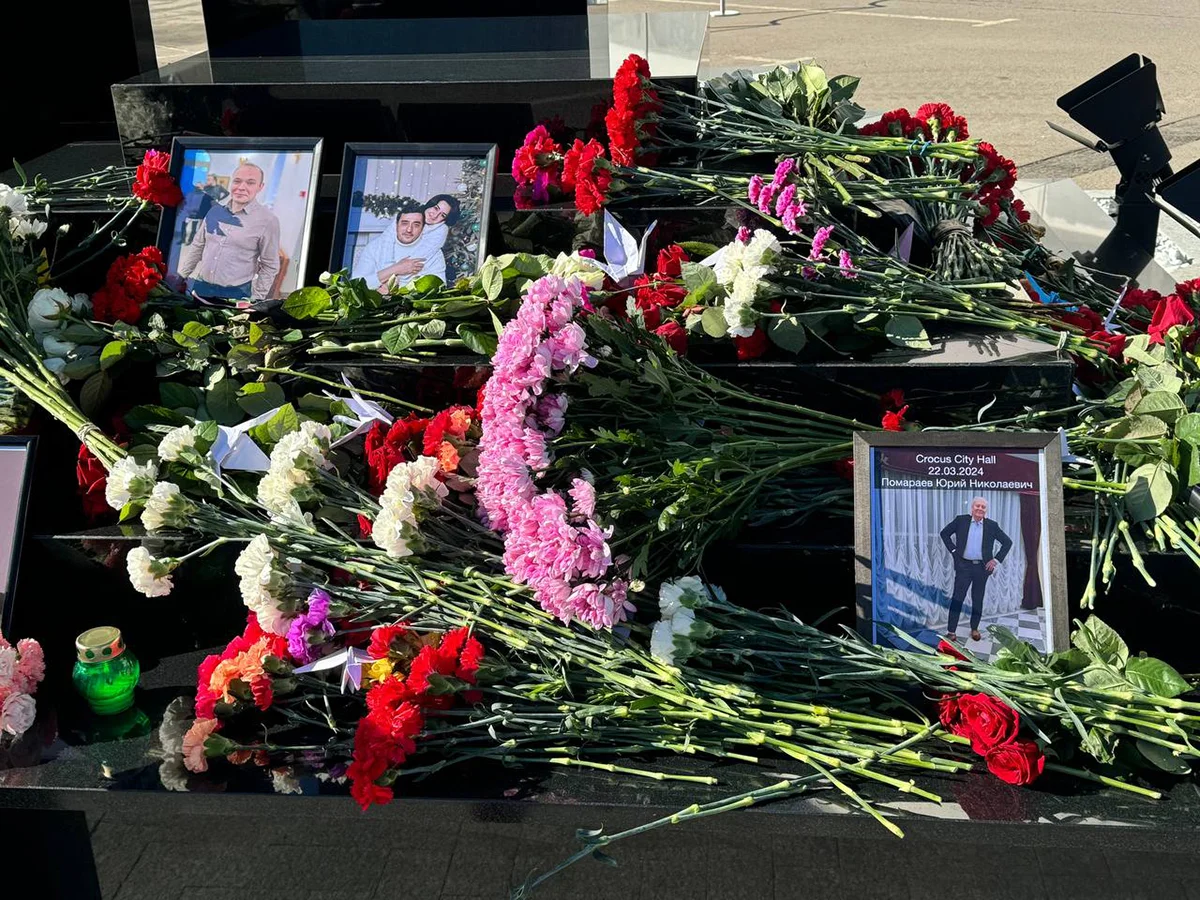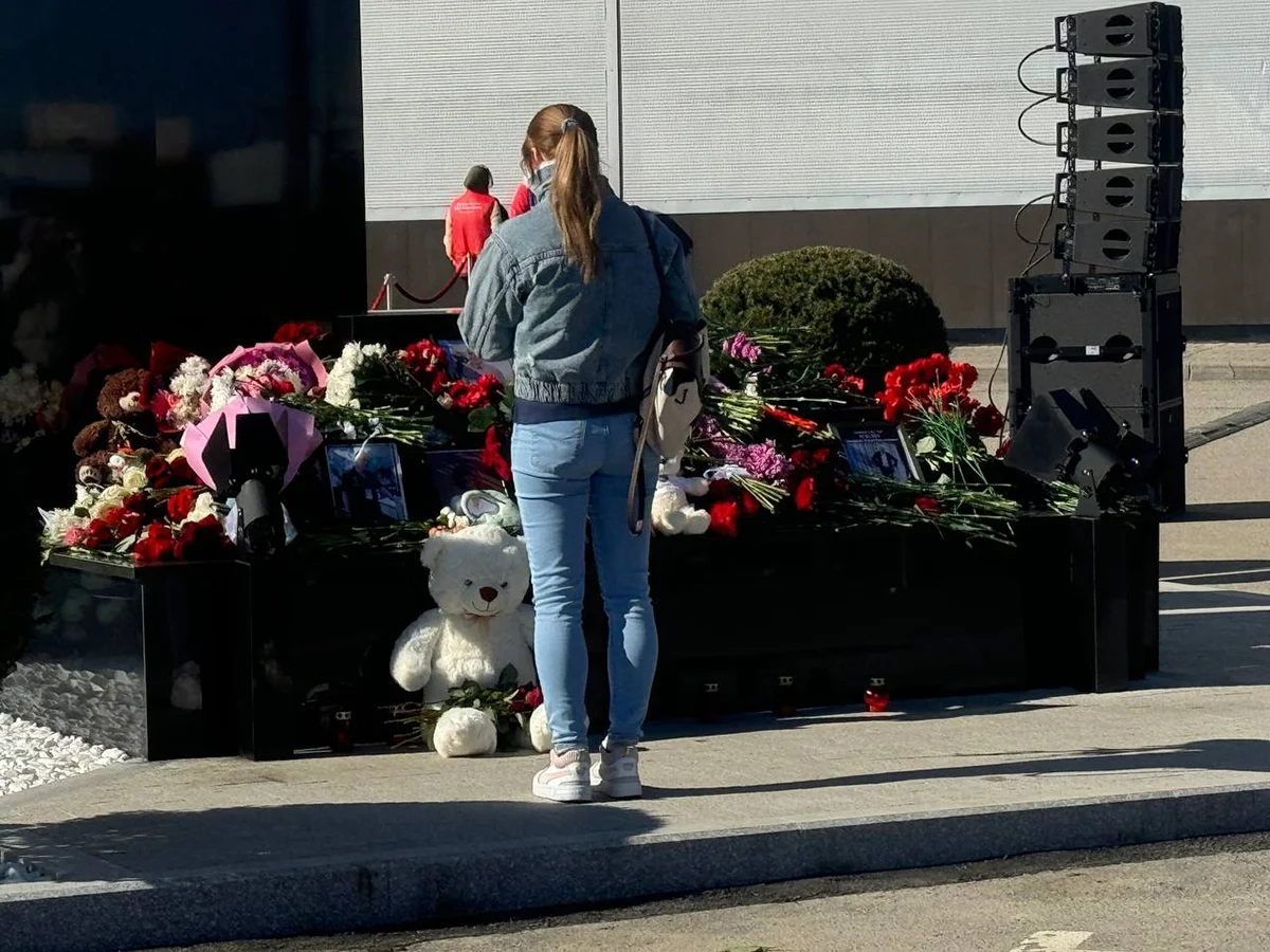 Люди приносят цветы, свечи и бумажных журавлей — в честь песни «Журавли» Муслима Магомаева. Его именем назван концертный зал, где случился теракт.