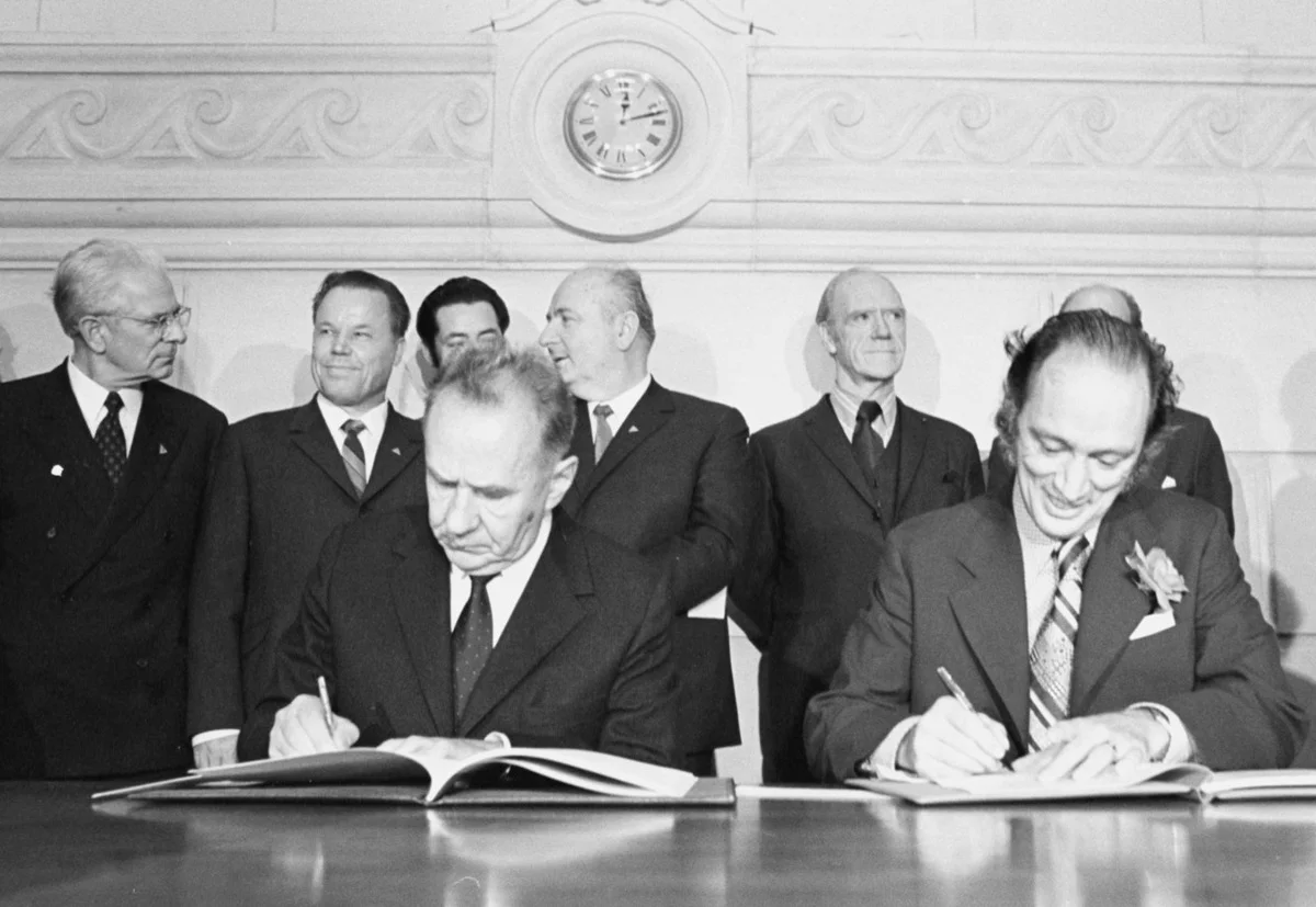 В свое время свой вклад в разрядку международной напряженности внес именно хоккей, и началось все с Суперсерии Канада–СССР 1972 года. В 2012 году к 40-летию этого события «Новая газета» выпустила в свет книгу Андрея Колесникова* «Холодная война на льду» о спортивных и политических обстоятельствах тогдашних знаковых состязаний. Новая версия книги, с исправлениями и дополнениями, готовилась к 50-летию Суперсерии, но началась СВО… Мы хотим познакомить читателя с некоторыми новыми сведениями о том, что предшествовало знаменательным матчам, способствовавшим детанту 1970-х. И в частности, с фрагментами новой версии той же книги, пополненной документами из Российского государственного архива новейшей истории (РГАНИ). Они характеризуют работу советской политической и бюрократической машины вокруг Суперсерии и чемпионата мира по хоккею 1973 года. Эти мирные баталии добавили Советскому Союзу мягкой силы. Именно мягкой…