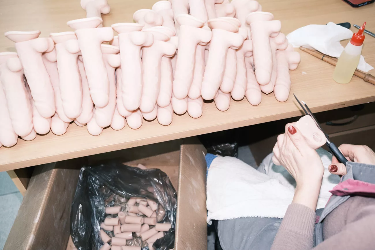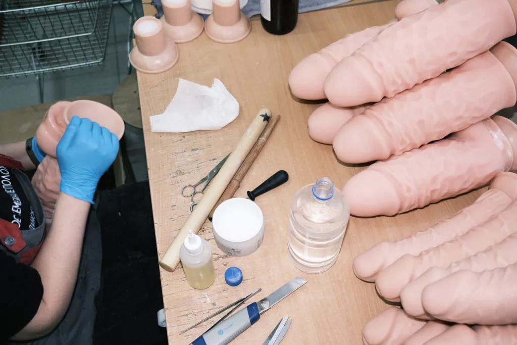 Сотрудница сборочного цеха Наталья, невысокая брюнетка с серьёзным выражением лица, «доводит до ума» 20-сантиметровый фаллоимитатор: ловко обстригает ножницами лишнее у основания яичек, пинцетом выщипывает «заусенцы» на стволе, затем переворачивает изделие и ловким движением вырывает «мяско» — частичное удаление материала внутри облегчает игрушку. Потом Наталья будет «красить голову»: нанесёт специальную краску на кончик искусственного пениса, чтобы придать ему сходство с настоящим. Сборщицы говорят, что это необязательный этап: например, один из постоянных заказчиков «не любит крашеные».