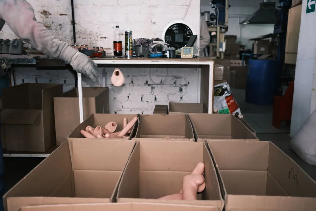 Два 3D-принтера почти бесшумно, слой за слоем, печатают пластиковые прототипы новых фаллоимитаторов: печать запущена несколько дней назад и пока различимы только очертания мошонки. Дизайнер Владимир говорит, что на печать большой модели уйдёт примерно неделя. Ещё года четыре назад, вспоминает он, процесс был сложнее: две работницы вручную вылепливали фаллосы из пластилина, по этим моделям изготавливали силиконовые формы, а затем заливали их воском. «Очень низкая была производительность», — поясняет мужчина.