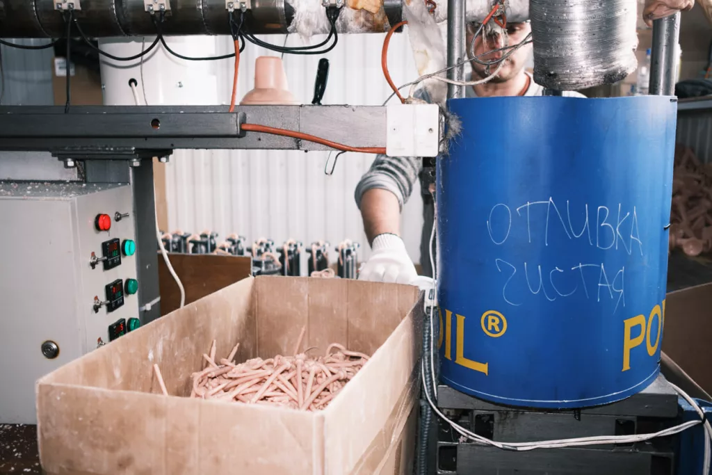 Из дизайнерского цеха прототипы будущих фаллоимитаторов отправляются в соседнюю станицу — Староджерелиевскую. Там работают два цеха предприятия: слесарный и литейный.