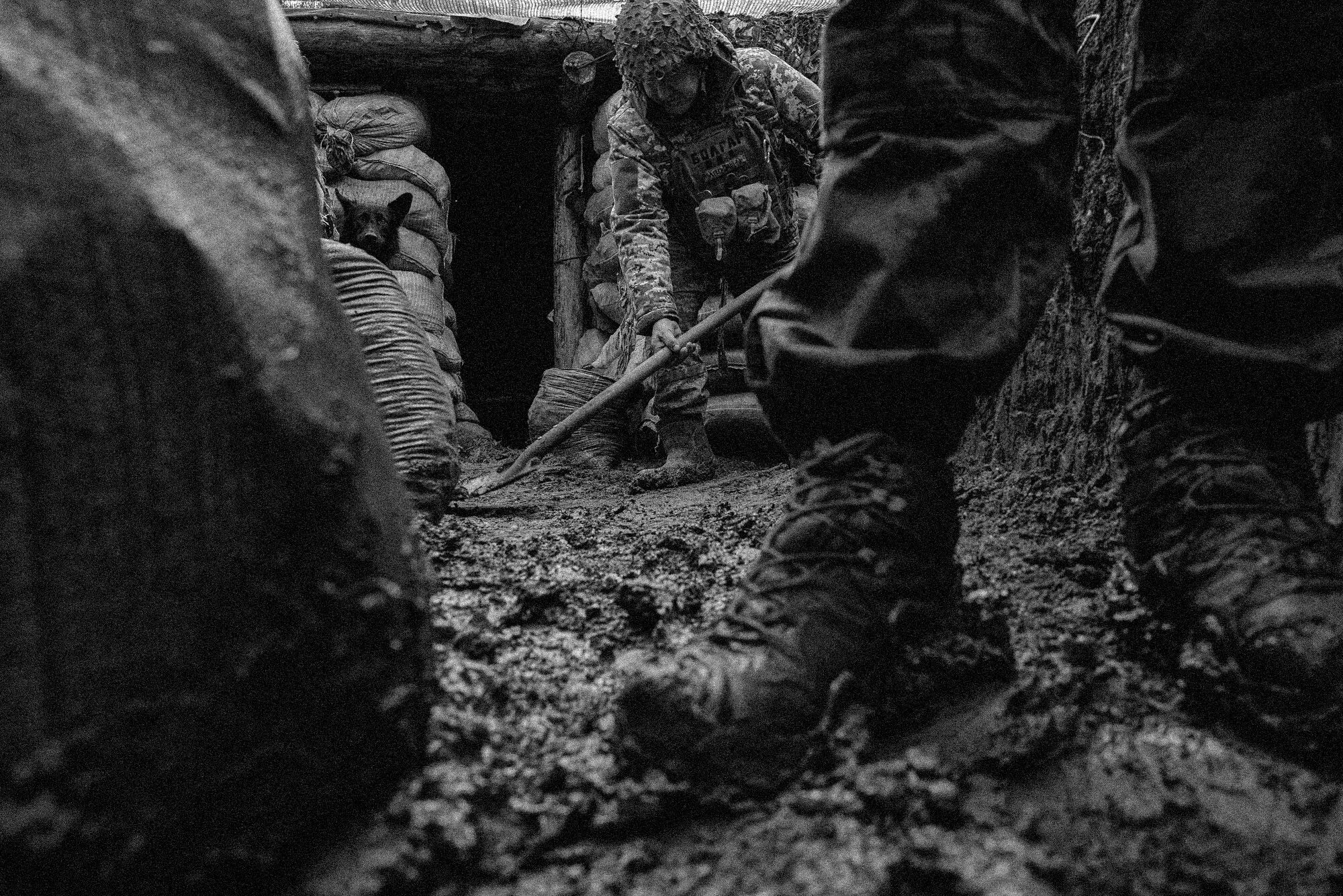 — Подвернутые ноги, убитый хребет, — рассказывает Тарас. — Буквально за месяц пацаны получают кучу грыж, протрузии и тому подобное. Потому что людей не хватает, ты делаешь в пять раз больше военной нормы — уже не говоря про гражданскую. И в итоге некому выходить на выходы. Я помню, я услышал звук приближающейся бомбы, искал укрытие, за дерево как-то упал. Прямо за мной взрываются кассетные снаряды, приближаются, это такой момент, когда прощаешься с жизнью. А у меня параллельно со страхом ощущение: ух, ну наконец, охуенно, я отдыхаю, лежу горизонтально. И когда выходил уже с ранением, у меня было такое приподнятое настроение! Я сначала думал, что это просто адреналин, но это было понимание, что я месяц буду отдыхать.