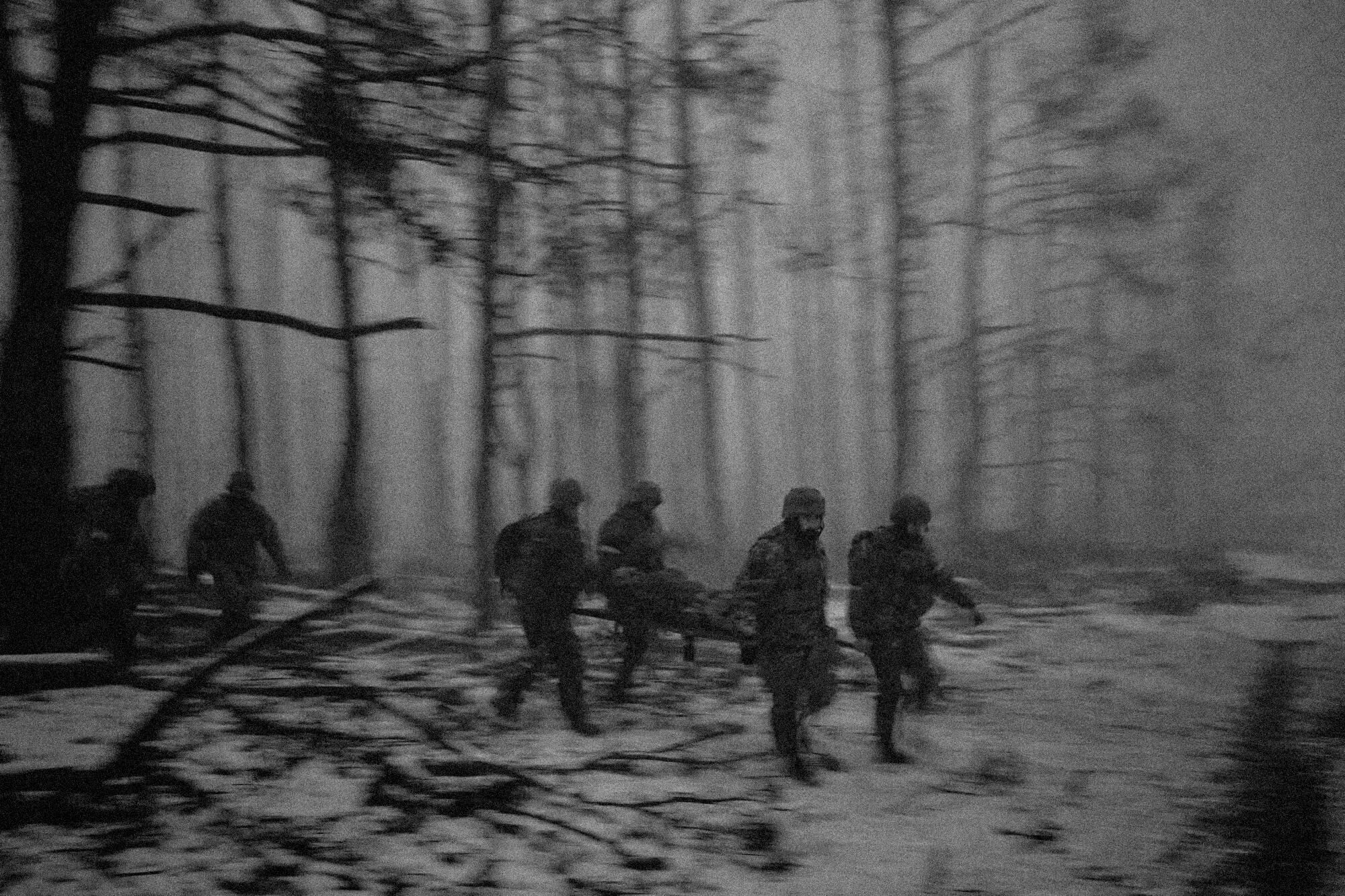 Первое — когда солдаты вручную тащат раненого до точки эвакуации — места, куда может подъехать транспорт. Как правило, это что-то бронированное, что может вывезти человека до стабпункта — какого-нибудь подвала в десяти километрах от нуля [передовой] или в сельскую больничку, где боевые медики пытаются стабилизировать раненого и обезболить. Это «кейсэвак», второе плечо. Если жизнь раненого спасена, его транспортируют в серьезную больницу, это «медэвак».